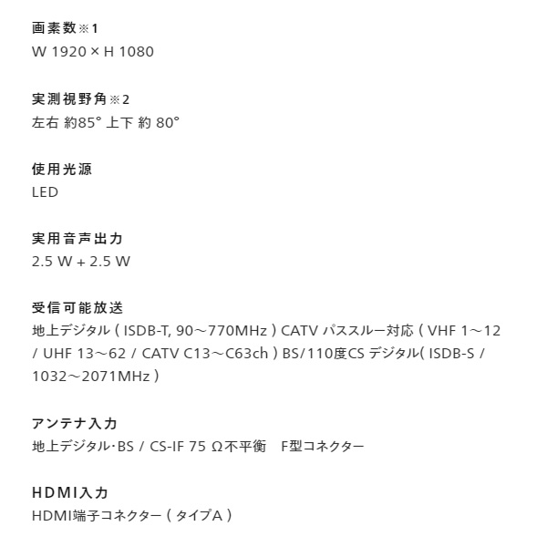 テレビ画素数:フルハイビジョン