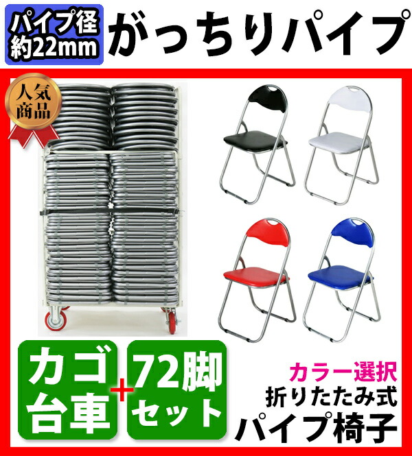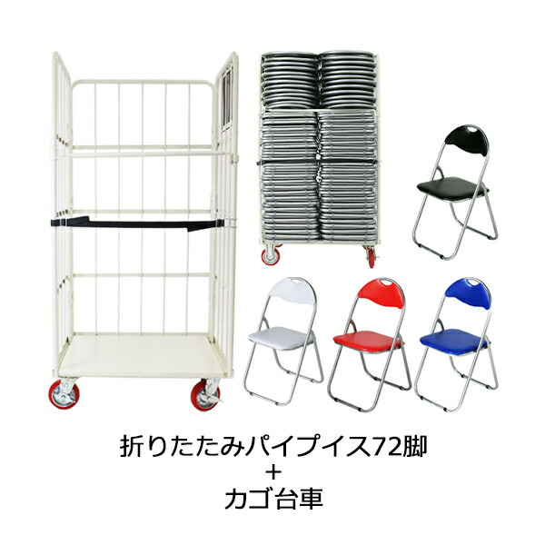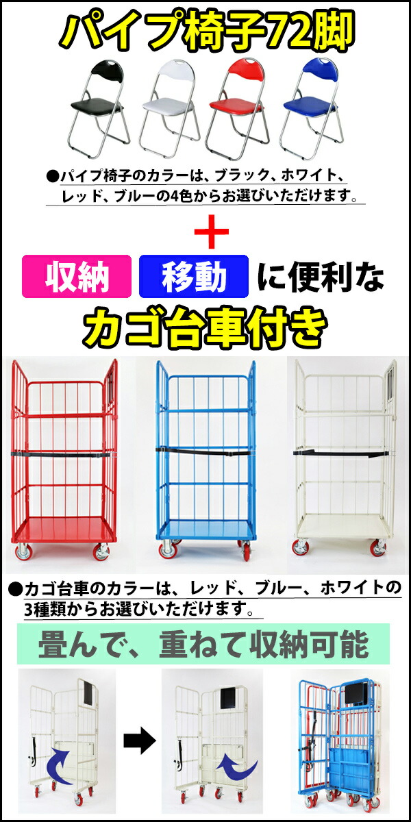 72脚セット パイプイス カラー選択 カゴ台車付き 折りたたみパイプ椅子 ミーティングチェア 会議イス 会議椅子 パイプチェア パイプ椅子 X カゴ台車 カゴ車 収納台車 xc72seta