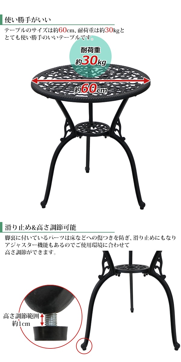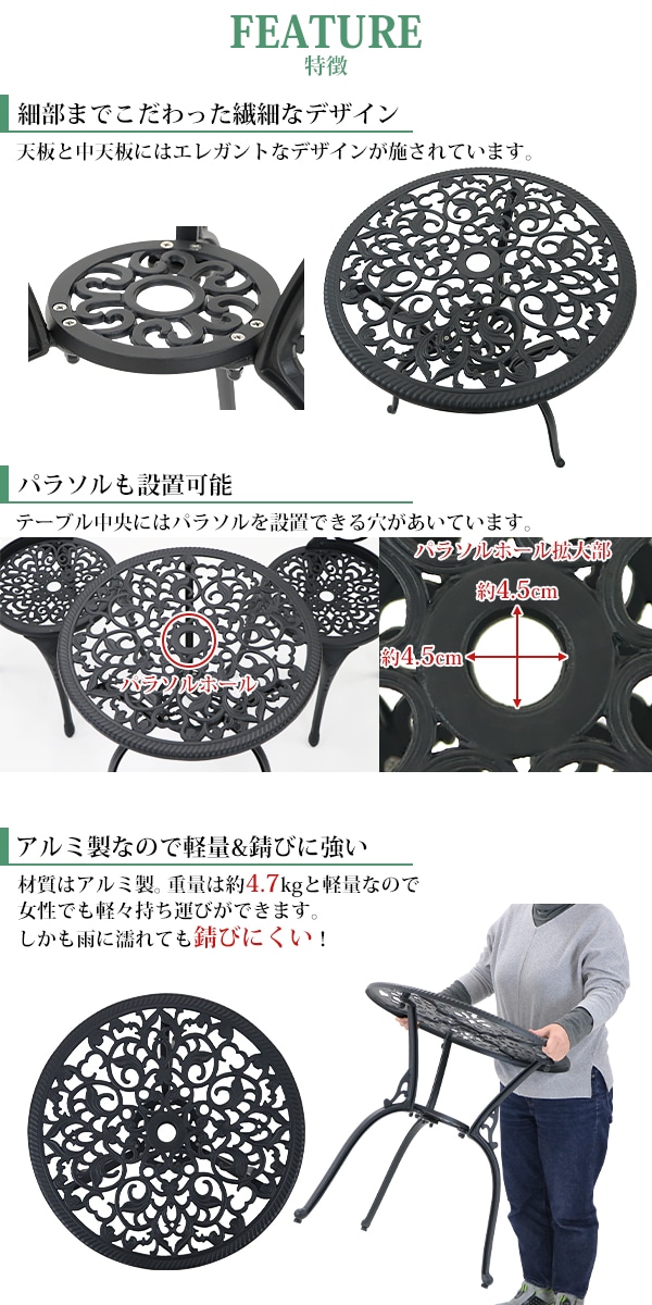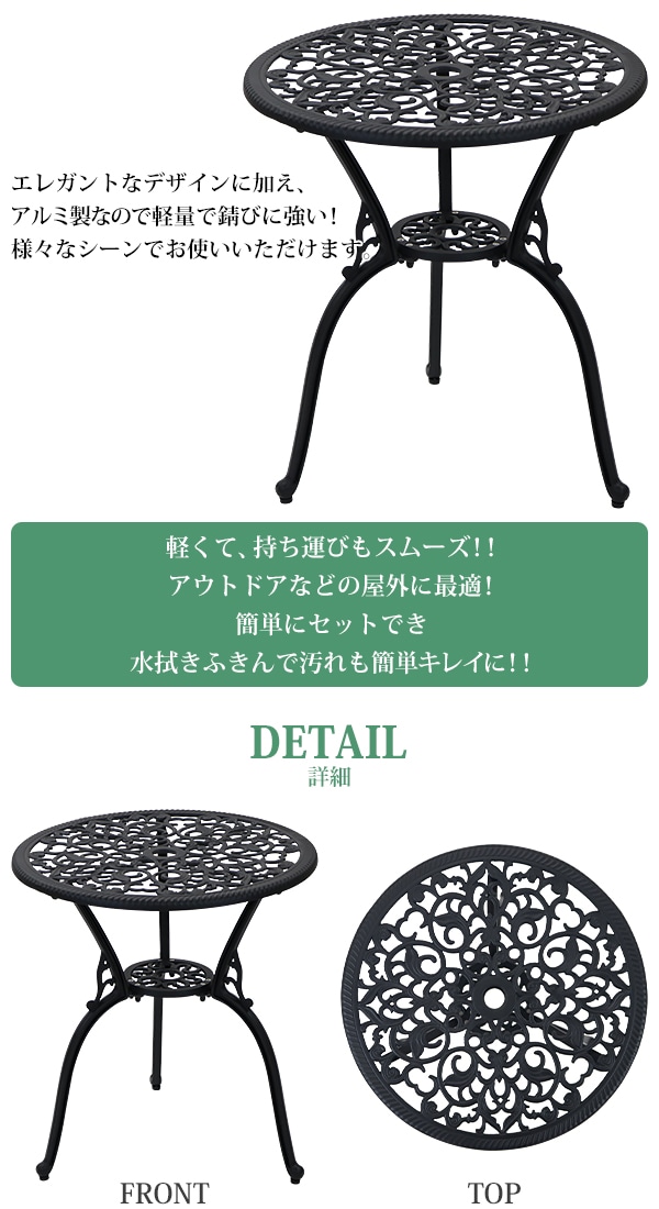 アルミ鋳物ガーデンテーブル アルミガーデンテーブル 軽量で持ち運び簡単 エレガント ガーデンファニチャー ガーデンテーブル アルミ テーブル キャンプテーブル アルミテーブル アウトドア 庭 バルコニー テラス 屋外 家具 鋳物 almimntaa36