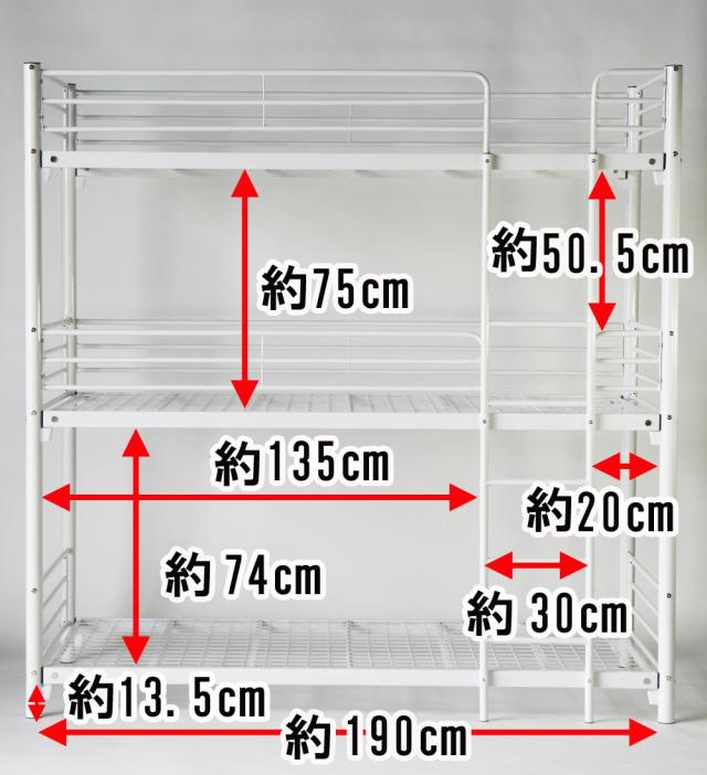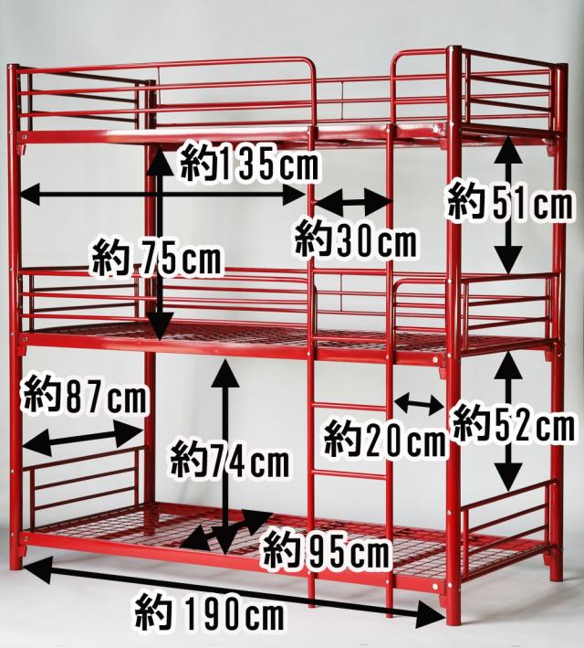 三段ベッド パイプ三段ベッド パイプベッド 三段ベッド 3段ベッド パイプベッド スチールベッド 二段ベッド 142