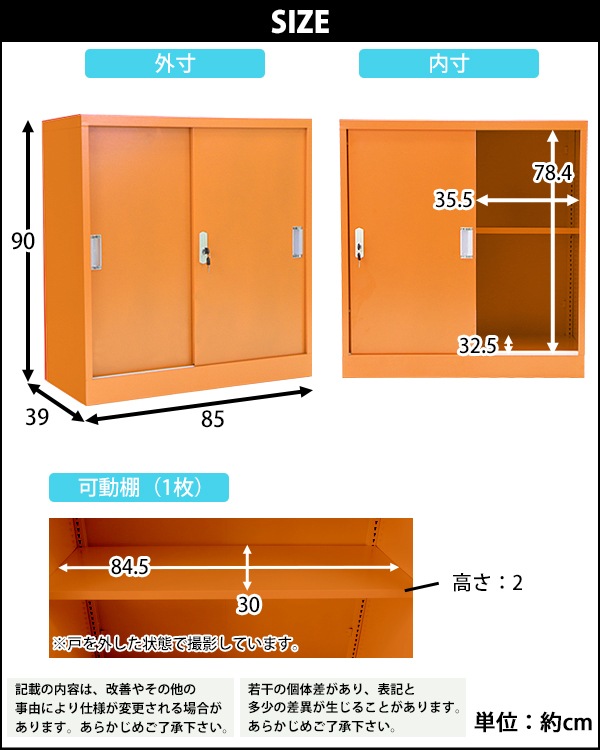 | 外寸 | 約W85×約D39×約H90(cm)(鍵は、合計2(内スペアキー1)個付属します。) |