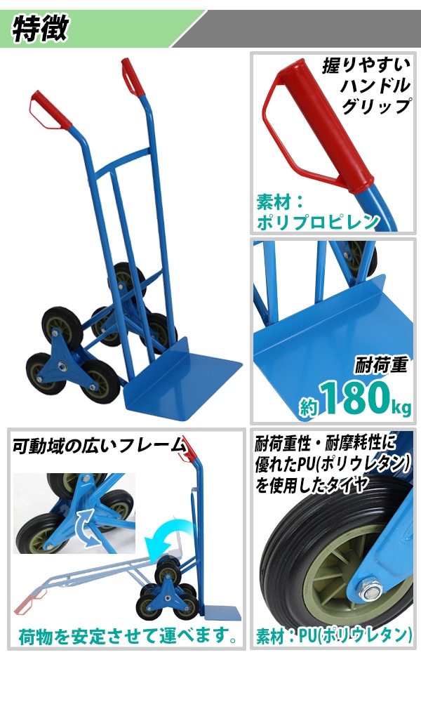 スチール三輪階段昇降機 耐荷重180kg 段差 22cm 220mm スチール製 階段 三輪 3輪 台車 キャリー カート 運搬 物流 ツールカート 段差解消 階段昇降 運搬台車 運搬機 階段昇降運搬車 荷物 業務用 タイヤ PU daishah10