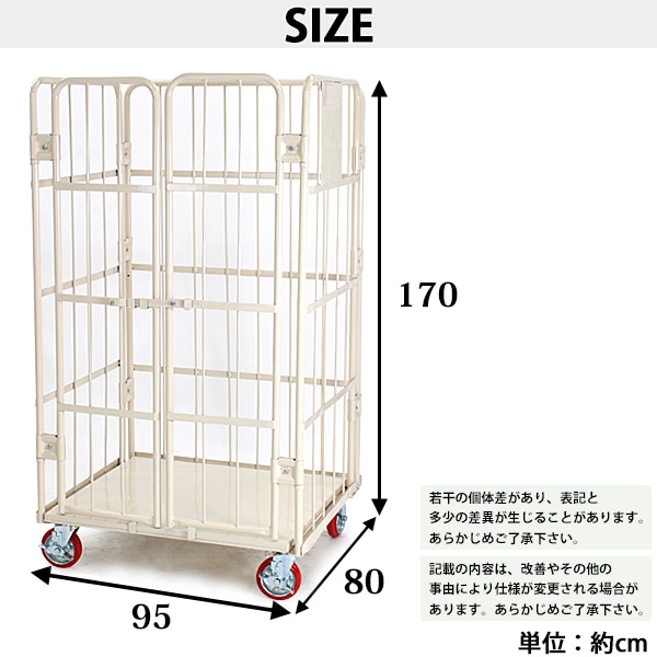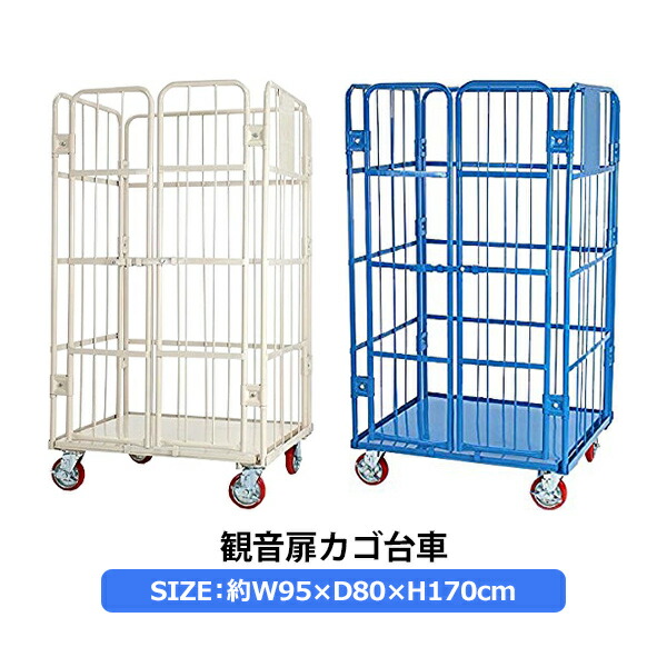観音扉カゴ台車 カゴ車 W95×D80×H170(cm) 耐荷重700kg 2ドア 扉付き かご台車 ロールボックス ロールパレット パレット 看板スチールプレート 観音開き 業務用台車 大型台車 倉庫 運搬 物流 移動 950×800×1700 キャスター cago2doorw95