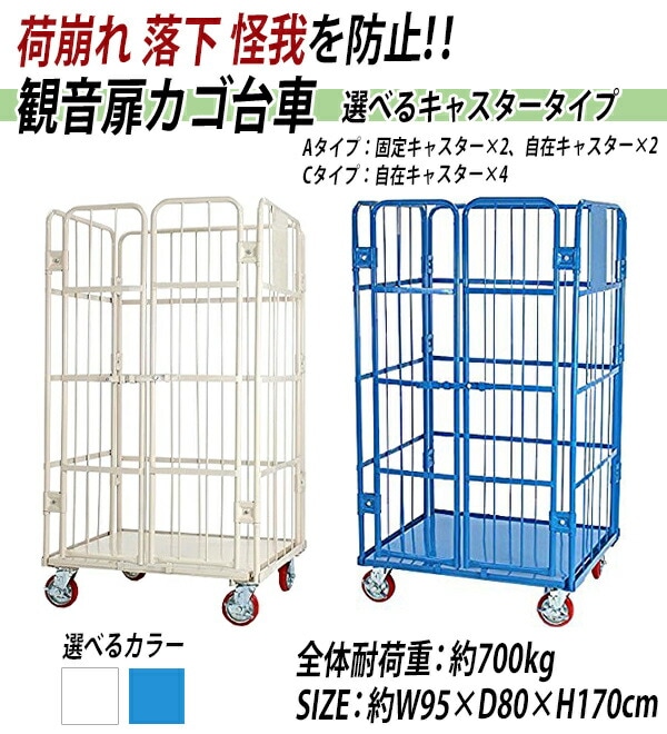 観音扉カゴ台車 カゴ車 W95×D80×H170cm 耐荷重700kg 2ドア 扉付き かご台車 ロールボックス ロールパレット パレット 看板スチールプレート 観音開き 業務用台車 大型台車 倉庫 運搬 物流 移動 950×800×1700 キャスター cago2doorw95