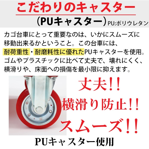 | 材質 | スチール(本体)、PU(ポリウレタン)(キャスター) |