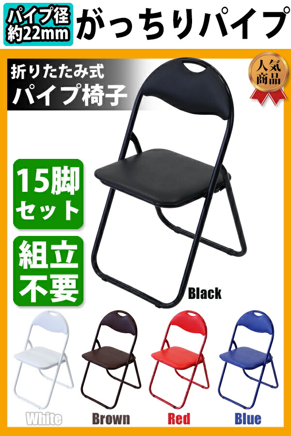 折りたたみ パイプ椅子 15脚セット 完成品 組立不要 粉体塗装 パイプイス ミーティングチェア 会議イス 会議椅子 事務椅子 パイプチェア イス いす 背もたれ オフィス 椅子 簡易椅子 折り畳み スチール 軽量 xcall15set