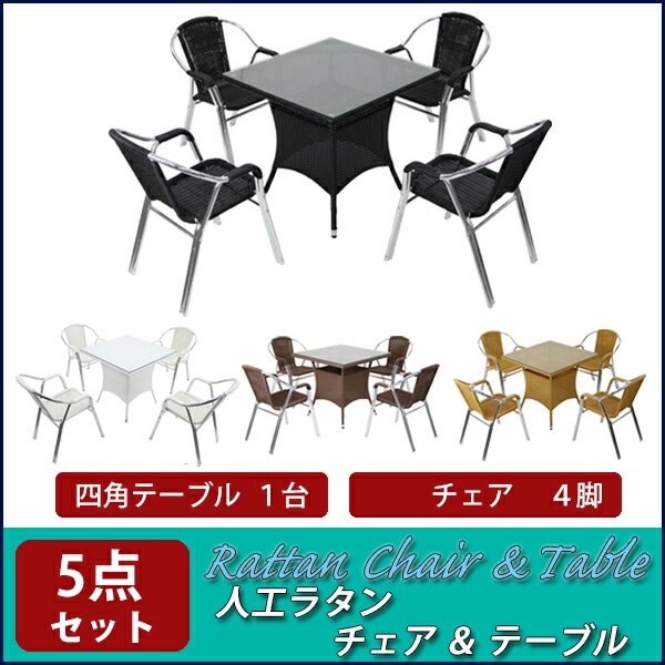 ガーデンチェア ガーデン チェア ラタンチェア ラタン テーブル ラタンテーブル 4脚セット 人工ラタンチェア4脚 四角テーブル1台 5点セット 強化ガラス 籐 肘掛けカバー付 家具 ファニチャー インテリア スタッキングチェア ガーデン rattan17