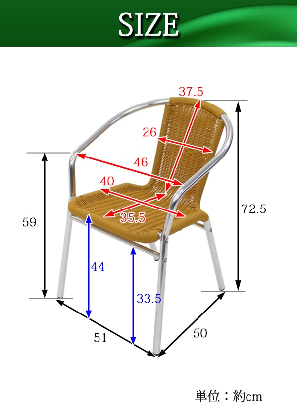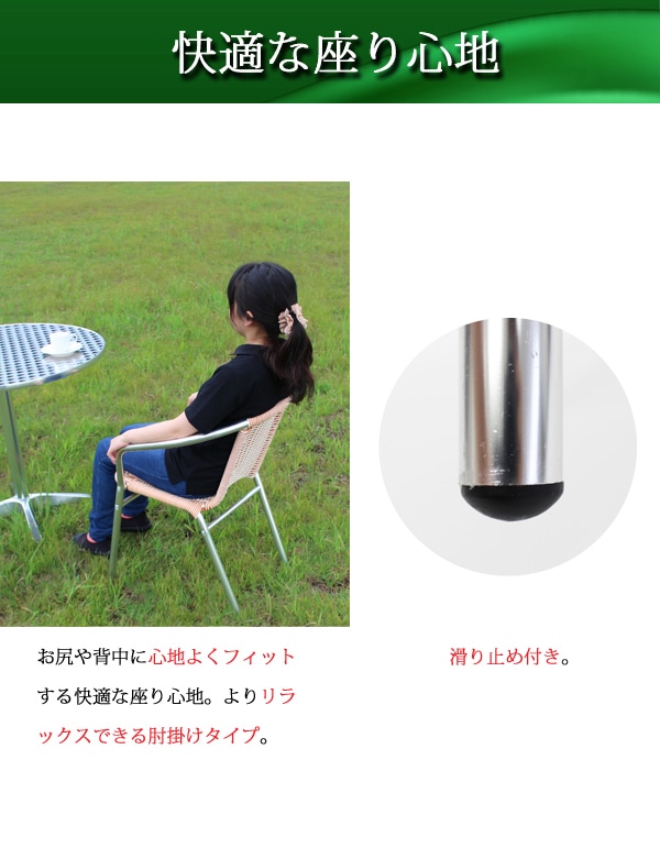 | 材質 | アルミ(フレーム)、人工ラタン(ポリエチレン) |