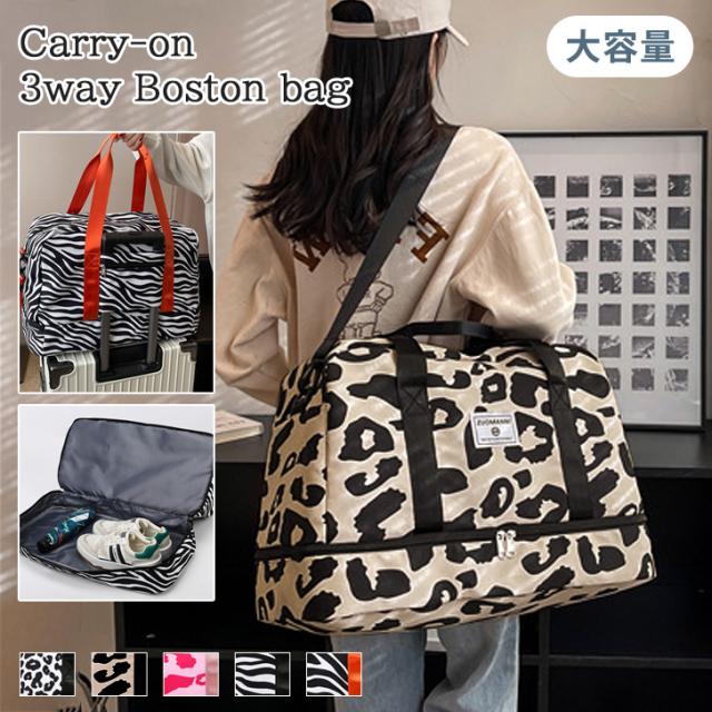 新作 3way キャリーオン 2層ルーム アニマル柄 ボストンバッグ メンズ レディース 大容量 旅行カバン トートバッグ ショルダーバッグ 大きめ 撥水 おしゃれ 旅行 トラベル 一泊二日 修学旅行 ジム ゴルフ