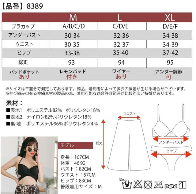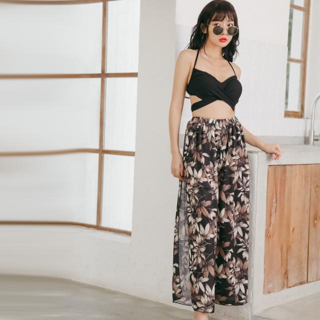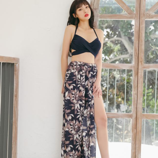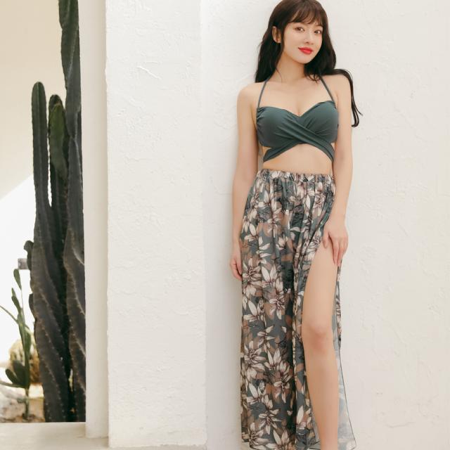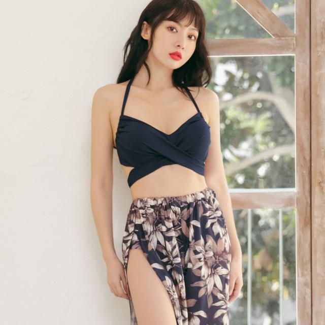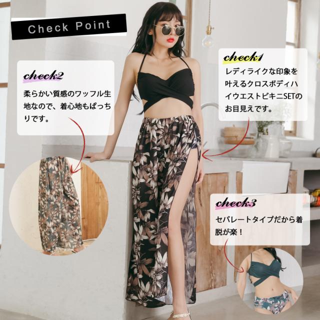 新作水着 水着 レディース ビキニ 3点セット パンツ スカート パレオ ラッシュガード 体型カバー パッド付き ワイヤー入り セパレート フリル レース 花柄