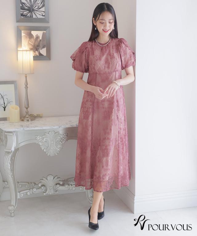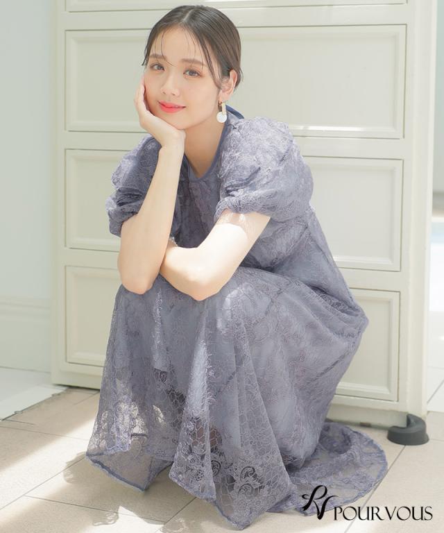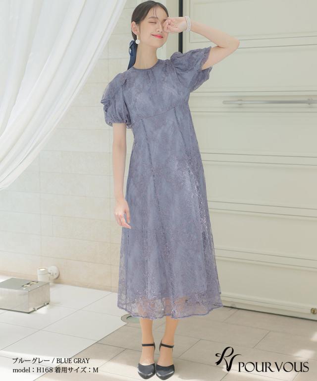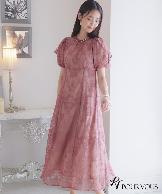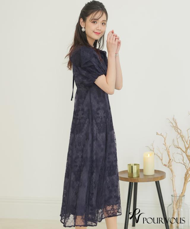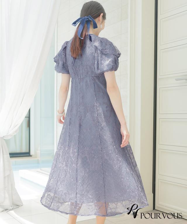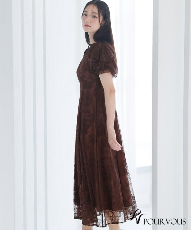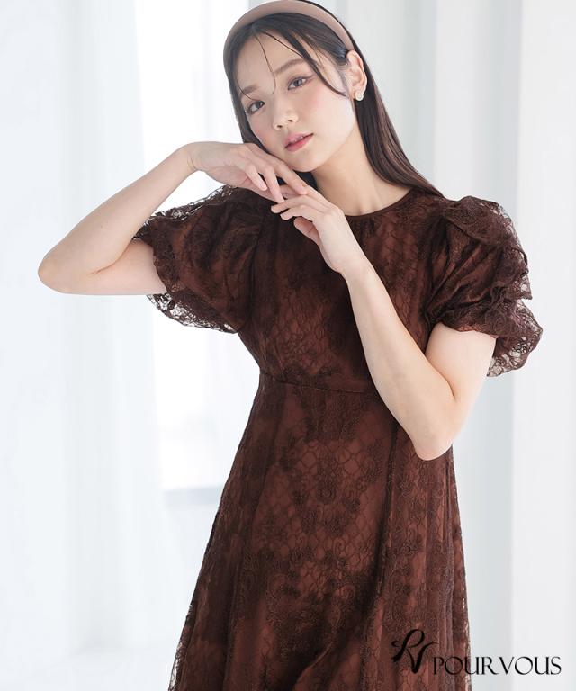 パフスリーブバックリボン総レースワンピース/753231425