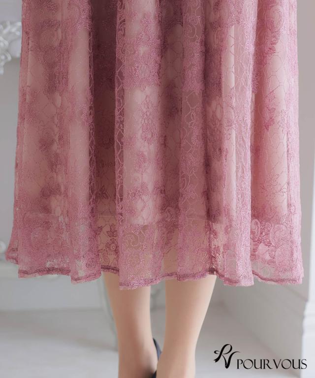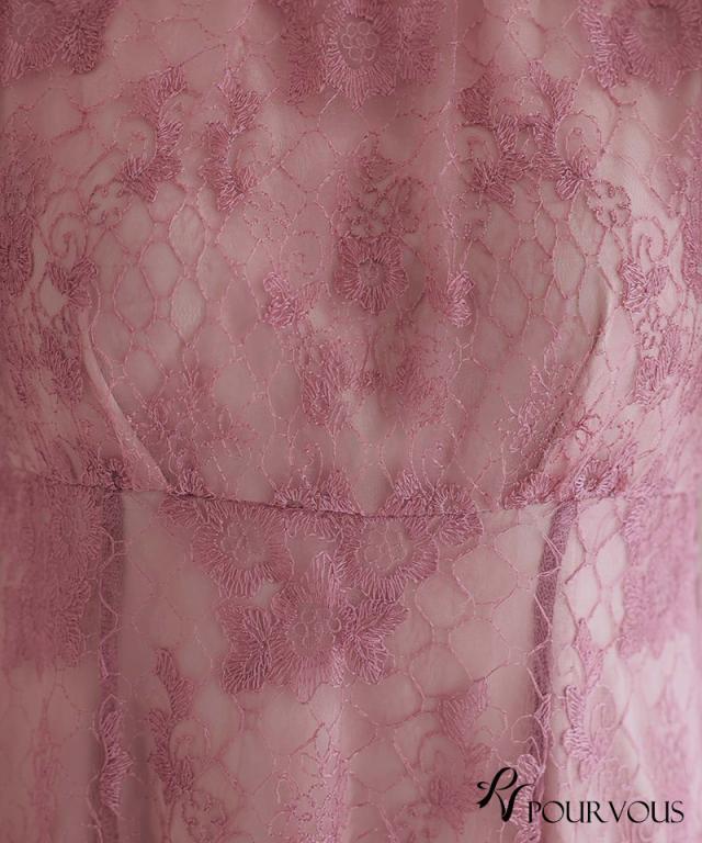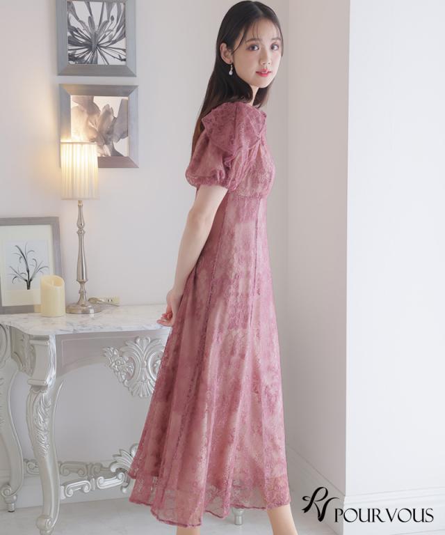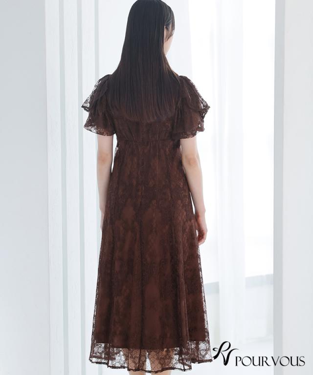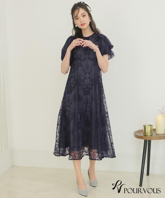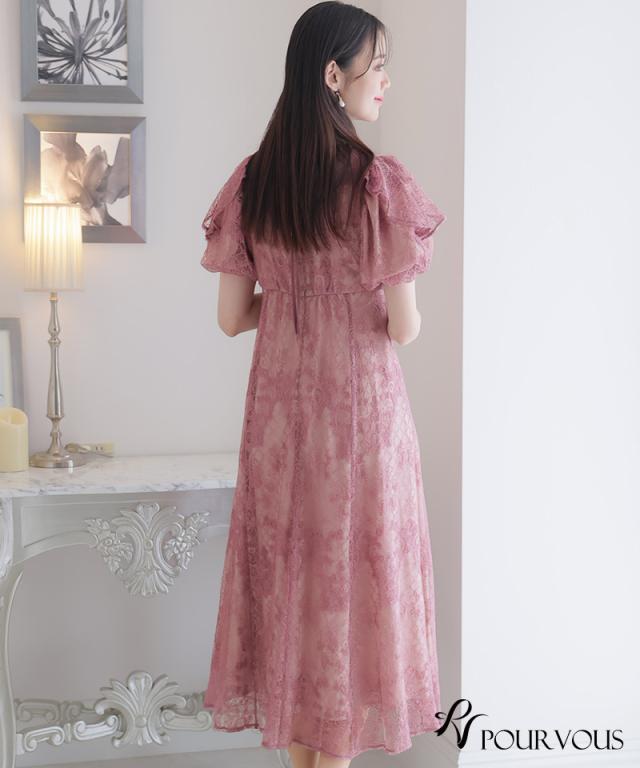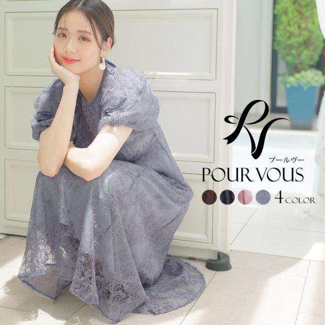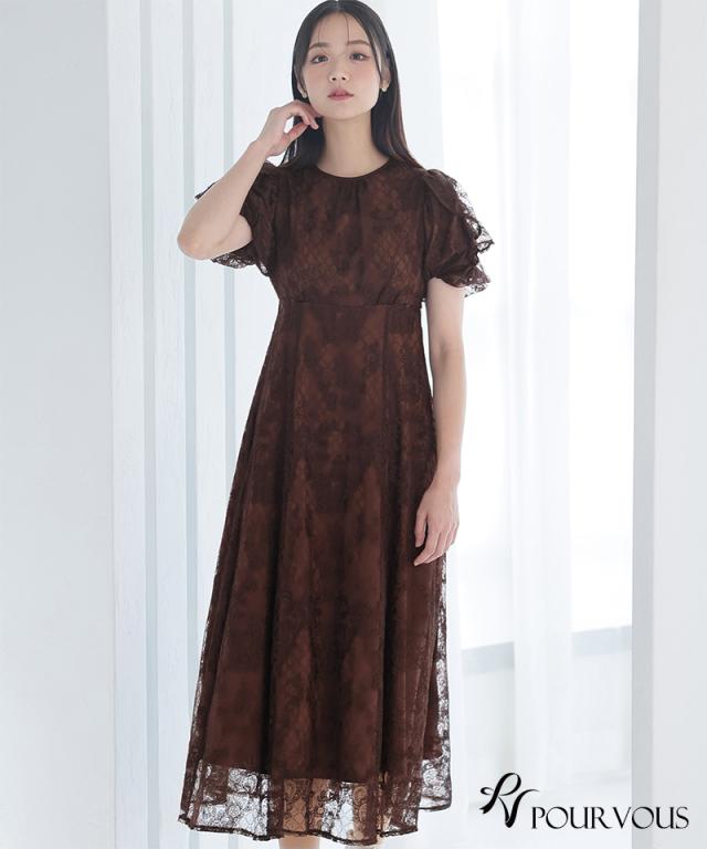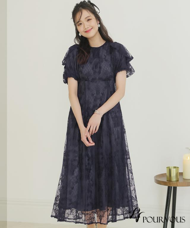 パフスリーブバックリボン総レースワンピース/753231425