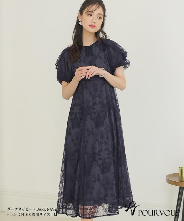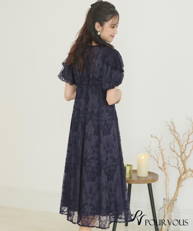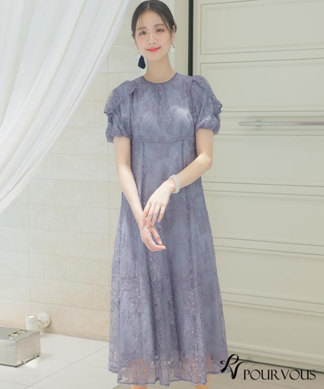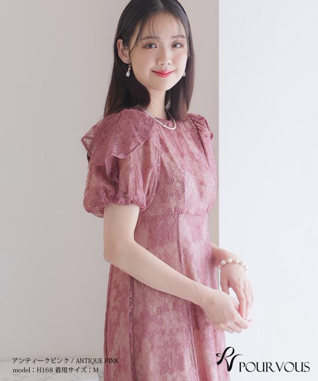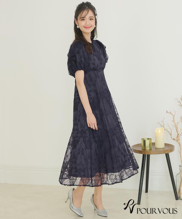 パフスリーブバックリボン総レースワンピース【753231425】20代・30代・40代・54代長袖・膝丈・セットアップ・スカート・体型カバー・ジャケット・テーラード・スーツ・大きいサイズなど・即日発送・送料無料結婚式・婚活・披露宴・顔合わせ・二次会・同窓会・お呼ばれ・食事会・謝恩会・親族・七五三・お宮参り・冠婚葬祭・弔事・女子会・デート・入学式・卒業式・入園式・卒園式・ママ・マタニティー・セレモニー・セレブ・パーティー