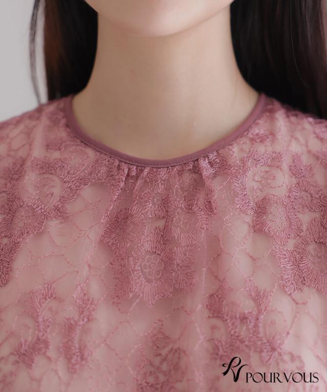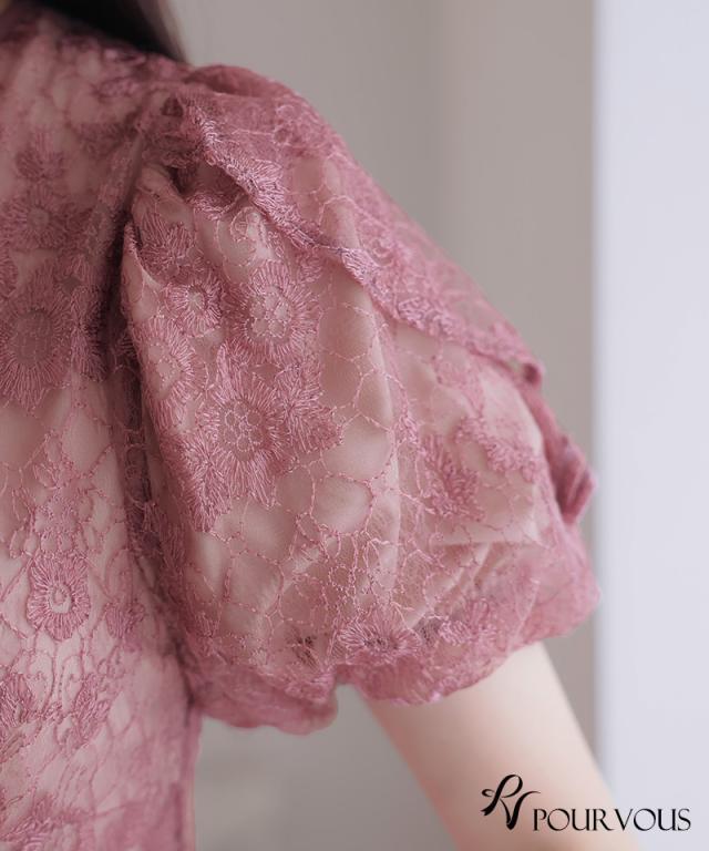 ■パフスリーブ×花柄刺繍レース