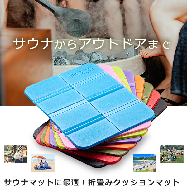 レジャータイムをもっと快適に、もっと手軽に。サウナからアウトドアまで、どんなシーンでも大活躍する折りたたみクッションマット。 驚きの軽さとコンパクトさで、持ち運びも楽々。しかも、8色から選べるカラーバリエーションで毎日が楽しくなること間違いなし!
