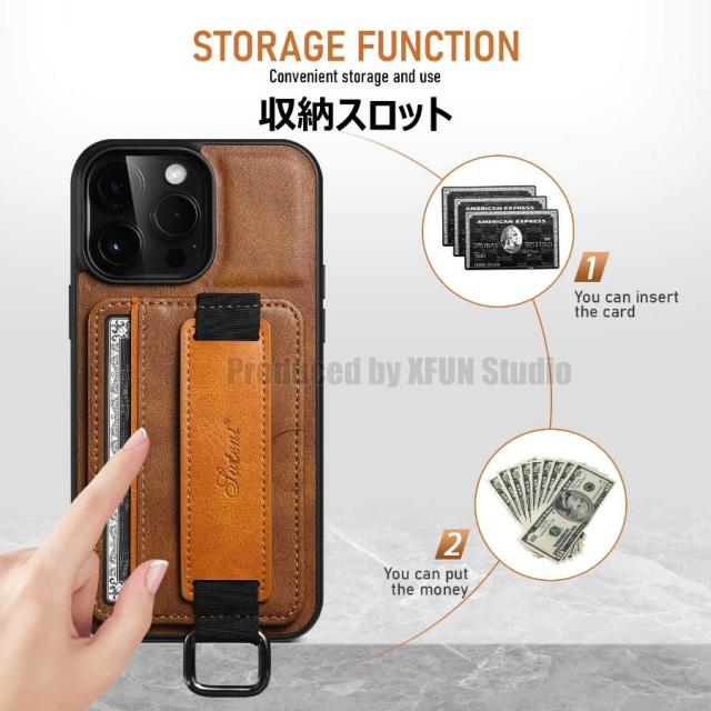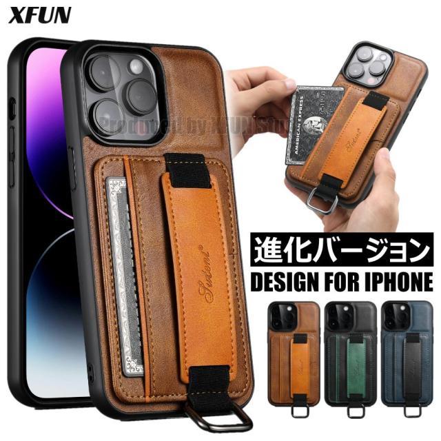 iPhone XR ケース ホルダー iPhone XS ケース バンド iPhone Xケース レザー ハンド ホルダー付き スタンド カード入れ iPhone XS Max ケース ブランド 背面ケース カメラ保護 耐衝撃 カバー 薄型 ストラップホール付き 送料無料
