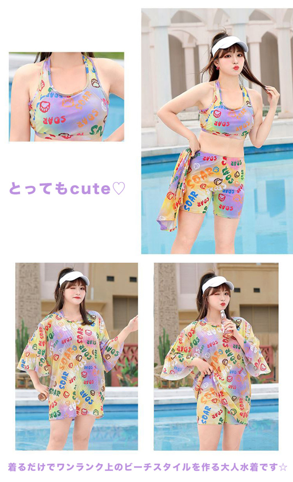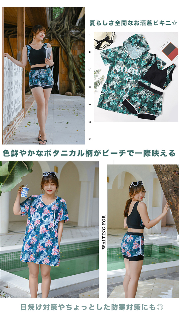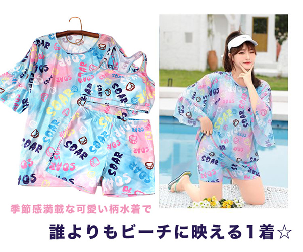 【レビュー投稿で+5%還元】日焼け対策やちょっとした防寒対策にも◎ハイウエストのショーツで足長効果も抜群!! 短納期 水着 体型カバー 3点セット 青 半袖 大きいサイズ 肩だし ぽっちゃり 女性 ラッシュガード ミセス ママ水着 ショートパンツ スイミング ジム 20代 30代