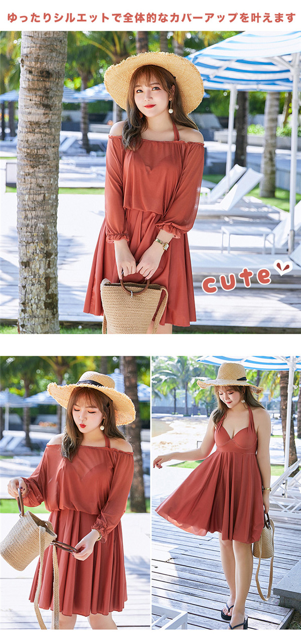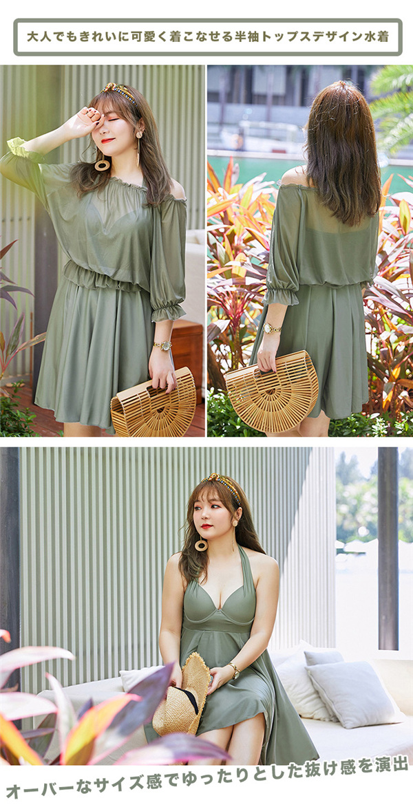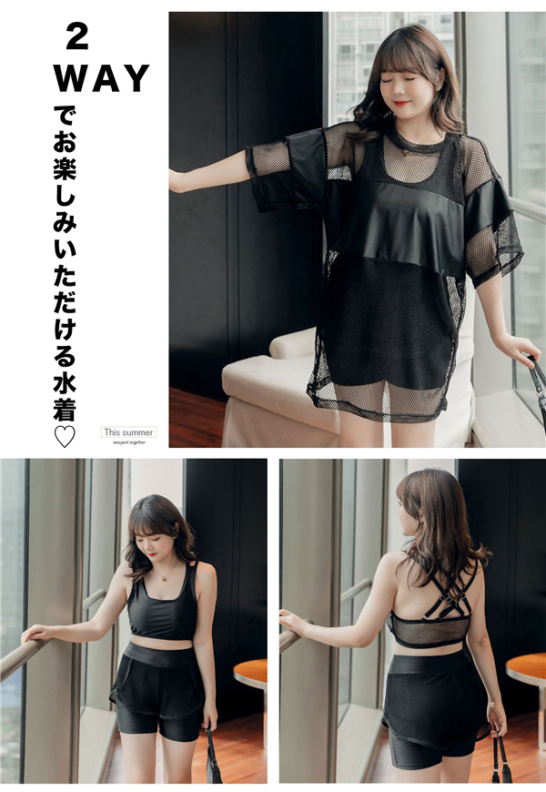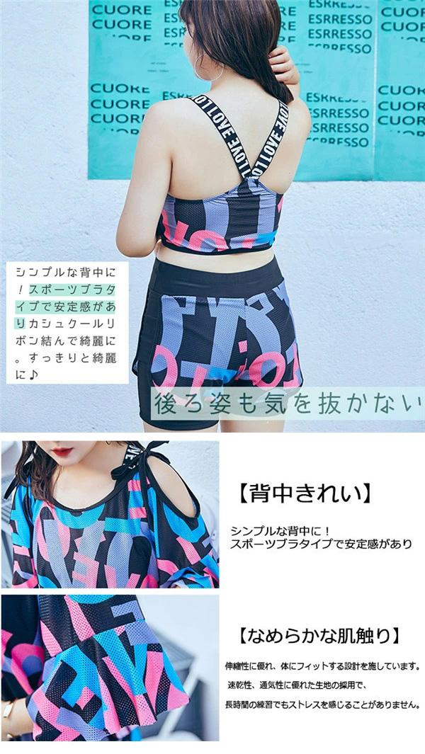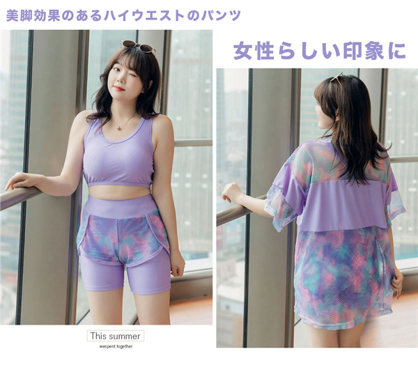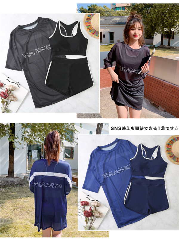 【商品名】日焼け対策やちょっとした防寒対策にも◎ハイウエストのショーツで足長効果も抜群!! 短納期 水着 体型カバー 3点セット 青 半袖 大きいサイズ 肩だし ぽっちゃり 女性 セパレート 大きいサイズ ラッシュガード ミセス ママ水着 ショートパンツ スイミング ジム 20代 30代 40代