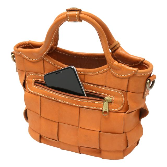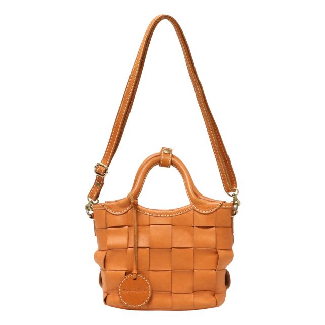 厳選された本革を、バスケットのように編み込んだ素材使いがかわいいバッグのシリーズ。職人の手により、1枚ずつ手で染めては天日で乾かすなどの工程を何度も繰り返して仕上げたカウレザーを使用しています。