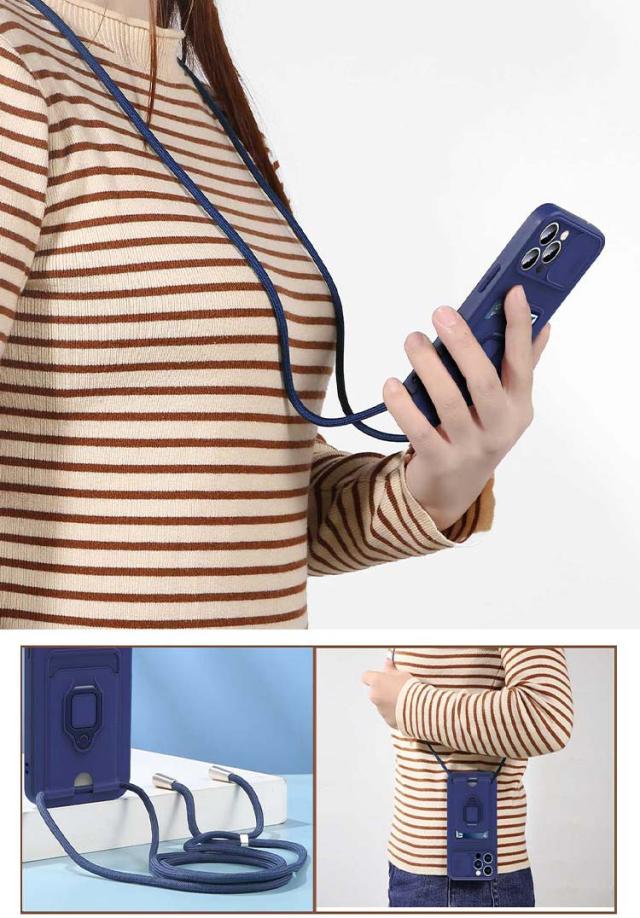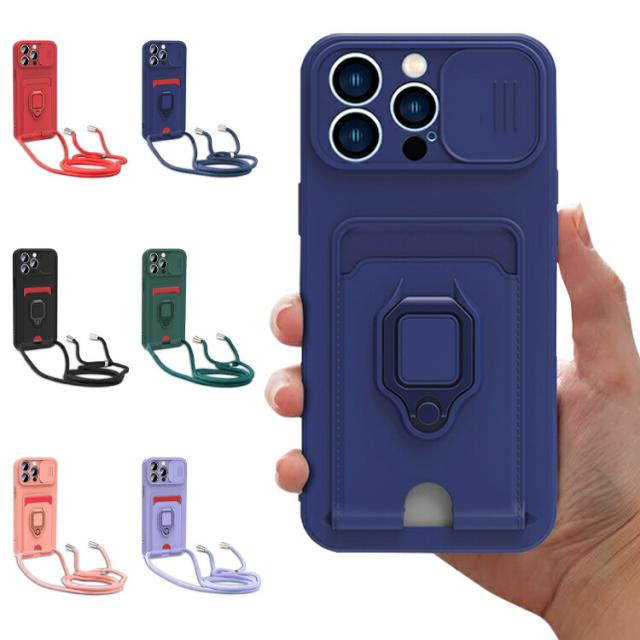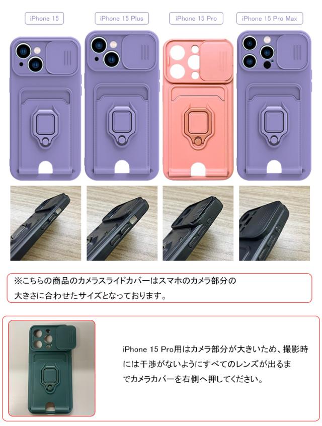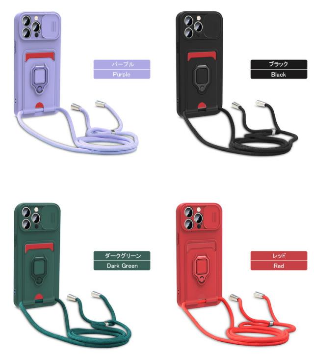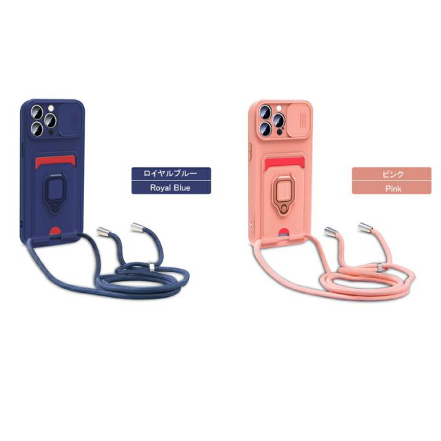 iPhone15 ケース 耐衝撃 カバー 一体型リング付 ストラップ付き スマホショルダー カード収納付き スタンド機能 スライド式カメラカバー Apple iPhone 15 Plus/15 Pro/15 Pro Max アップル アイフォン15/15プラス/15プロ/15プロマックス