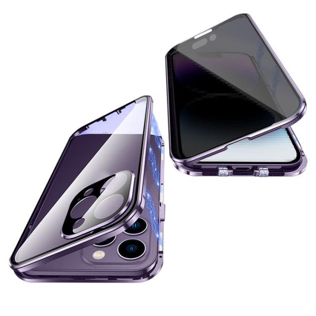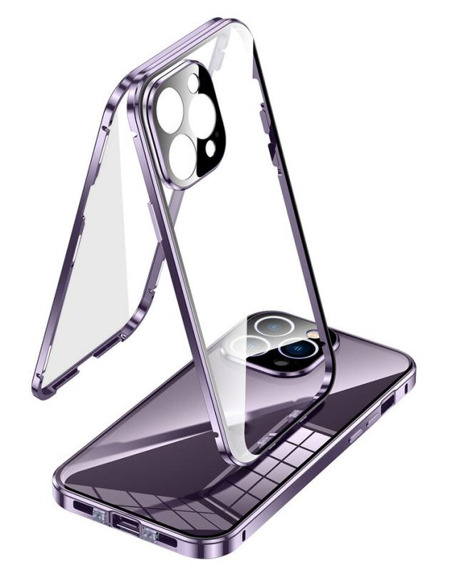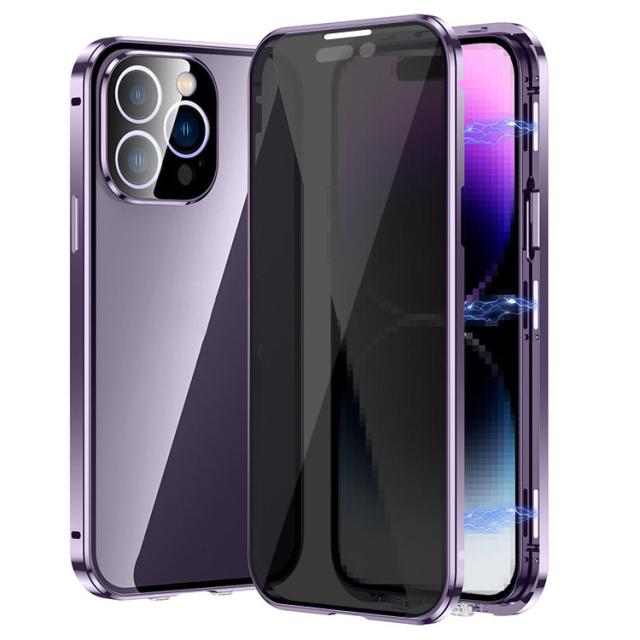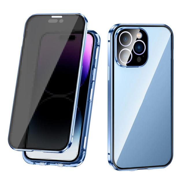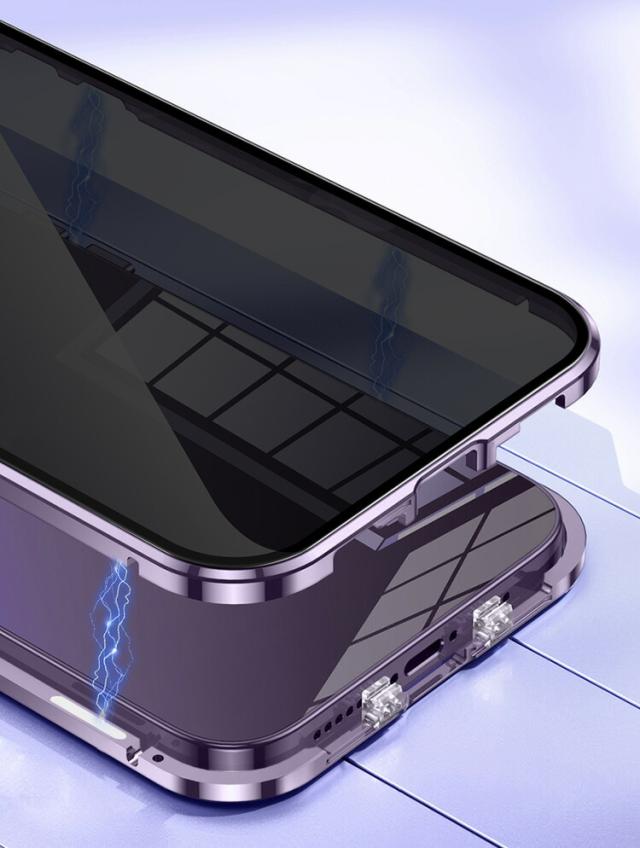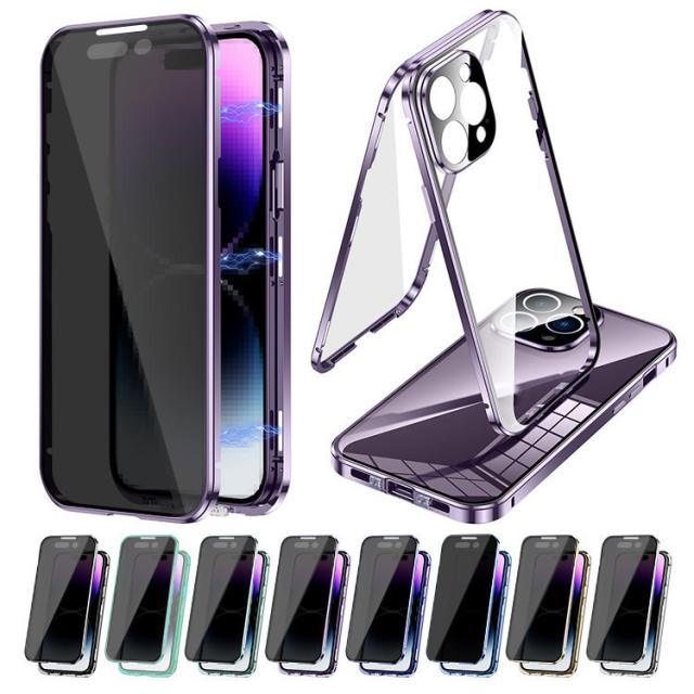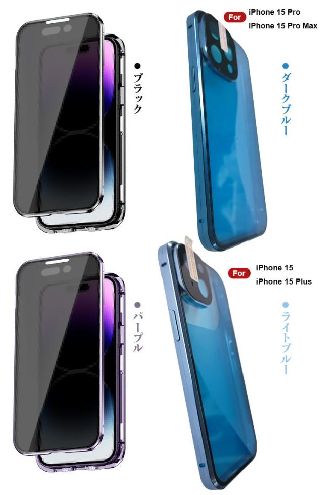 iPhone15 ケース アルミ バンパー 覗き見防止 前後強化ガラス かっこいい アルミバンパー ロック付き カメラ保護 クリア 透明 両面 マグネット固定 全面保護 Apple iPhone 15 Plus/15 Pro/15 Pro Max アップル アイフォン15/15プラス/15プロ/15プロマックス