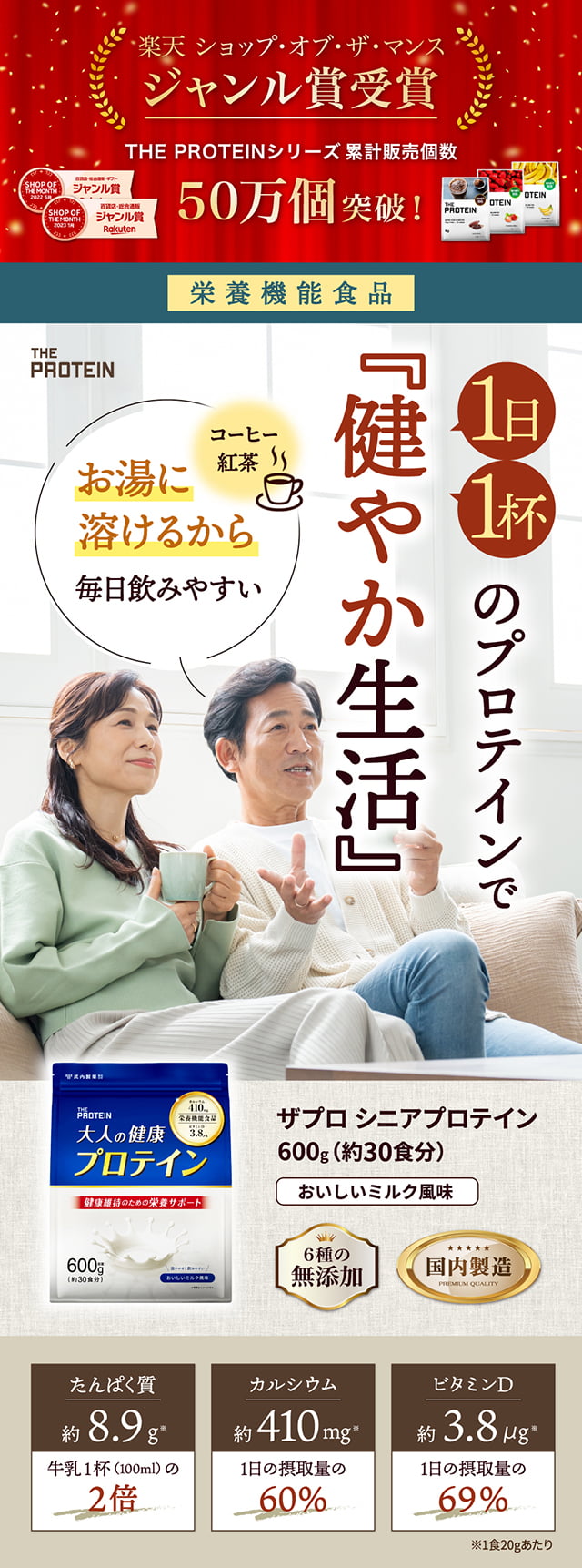 シニアプロテイン 600g ミルク風味 栄養機能食品 ザプロ 大人の健康プロテイン 大人の健康 プロテイン ホエイプロテイン 高齢者向け 無添加 人工甘味料不使用 ホエイ ザプロ タンパク質 カルシウム ビタミンD ビタミンK 美味しい お試しサイズ 大人向け