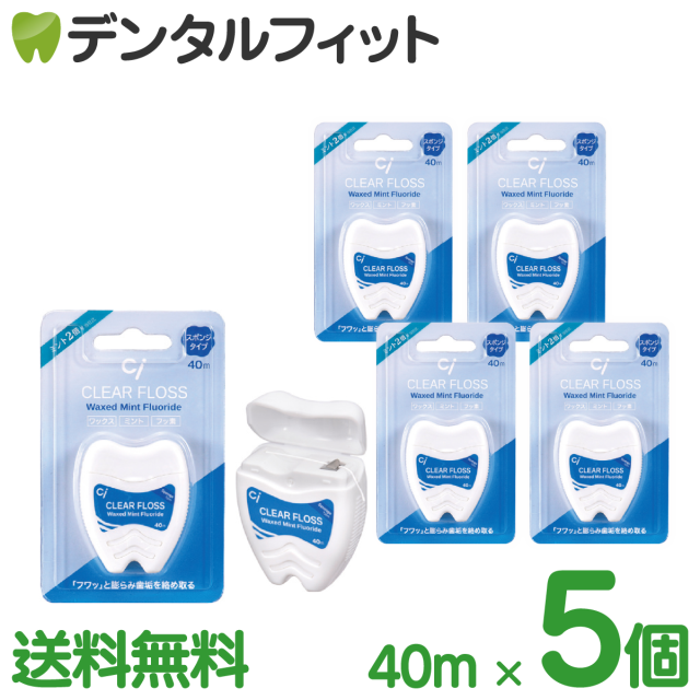 【メール便選択で送料無料】Ci クリアフロス 《スポンジタイプ》ミントワックス(フッ素加工) 40m 5個セット ミント 2倍 歯型ケース フロス