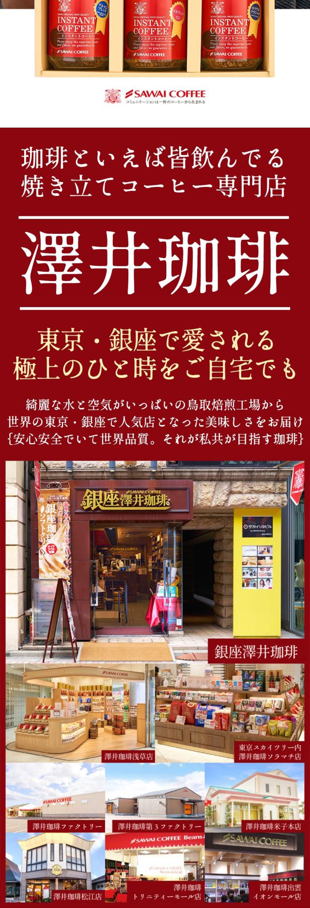 澤井珈琲(さわいこーひー)では、お客様のお家に商品が届き、箱を開けた瞬間。そして、トレードマークの赤いコーヒー袋の封を開けた時に鮮度抜群の「香り高さ」と、飲んだときの「味わい」に感動して頂けるように、レギュラーコーヒーはご注文を頂いてから焙煎をして焼きたてのコーヒー、コーヒー豆、珈琲、珈琲豆をお届けをしている焼き立て珈琲専門店です。お客様に「美味しい」と言って喜んで頂く事が私たちの喜びと思ってます。「美味しいコーヒーをお届けしたい」と想い続けて生まれたこだわりの味を、どうぞ、この機会にお楽しみくださいませ。澤井珈琲では、コーヒー豆は挽き方がご選択いただけます。珈琲豆を挽く事をお楽しみ頂ける『豆のまま』や、私共の専用の特注サイズの大型のミルで挽いて、コーヒー粉の状態にしてお届けする方法がございます。中挽き、細挽き、粗挽き、荒挽きなど様々な挽き方がございますが、私共がお薦めする『店長のおすすめ挽き』にて、そのコーヒーに合った一番美味しいと思える挽き方に挽いてお届けします。東京の銀座にも実店舗を構え、都内では浅草やスカイツリーのあるソラマチにも出店。「鳥取のコーヒー屋さん」とも呼ばれてますが、空気が綺麗で自然豊かな鳥取県に焙煎工場を構え、隣接する島根県の松江市や出雲市にも実店舗がございます。顔の見えないネット通販ですが、全国11店舗を展開する安心安全な澤井珈琲は、特徴的な「赤いコーヒー袋」に入れて、全国の珈琲好きにお選び頂いてます。よく間違えられる名前として、沢井珈琲、沢井コーヒー、澤井珈琲店、澤井珈琲本店、さわいこーひー、サワイコーヒーなどがございますが、正式名称は澤井珈琲となります。