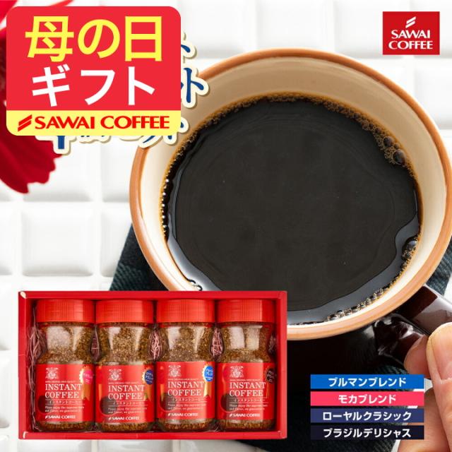 母の日ギフト コーヒーギフト 内祝い お返し 澤井珈琲 特選インスタントコーヒー 4本 ギフト おしゃれ 珈琲 フリーズドライ ブルマンブレンド ブルーマウンテン モカブレンド ロイヤルクラシック ブラジル