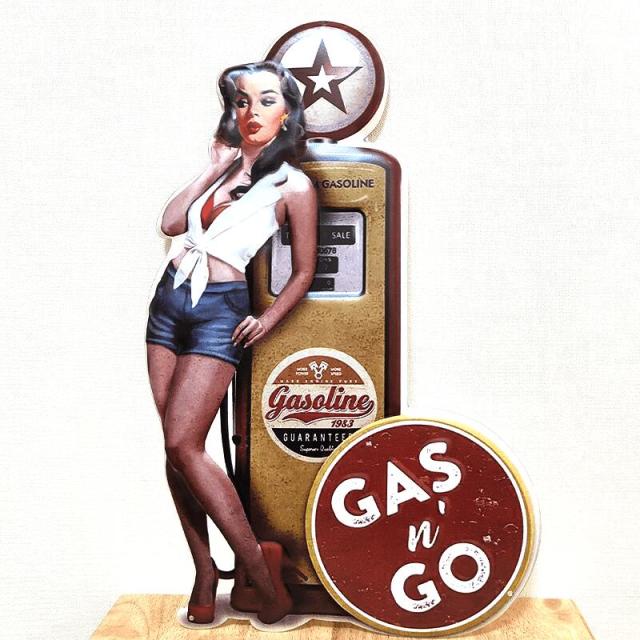 ブリキ看板 ビンテージ セクシー GAS & GO 女性 ガソリンスタンド アンティーク おしゃれ アメリカン 壁掛け プレート