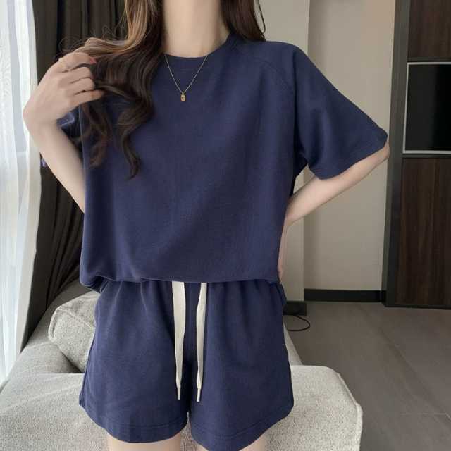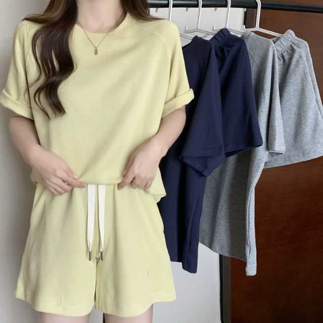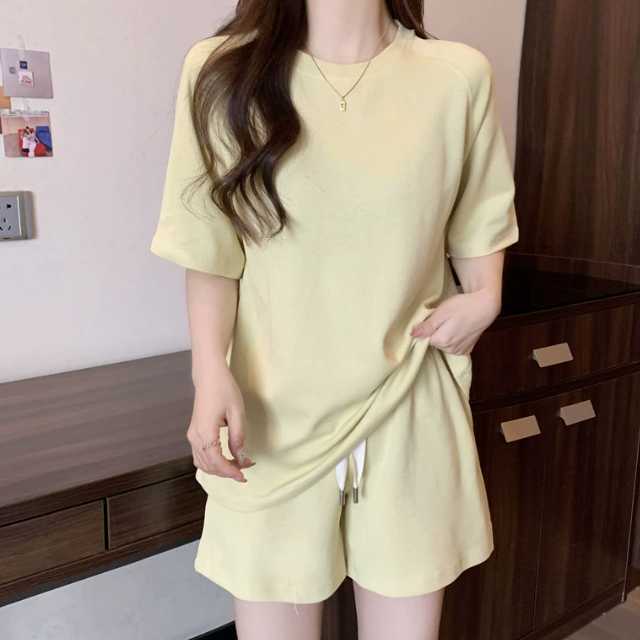 韓国 パジャマ ルームウェア レディース 上下 セットアップ 半袖 短パン 柔らか おしゃれ ズボン ハーフパンツ ウエスト紐 女の子 セクシー オシャレ 可愛い カワイイ 春夏 春秋 春 夏 秋 大きいサイズ