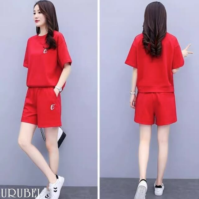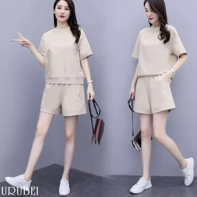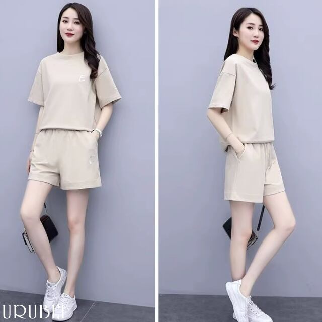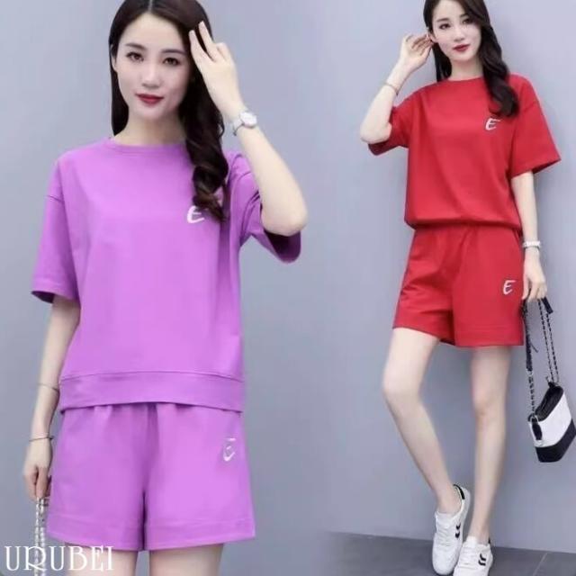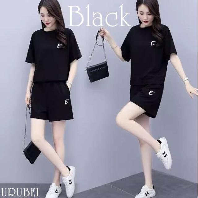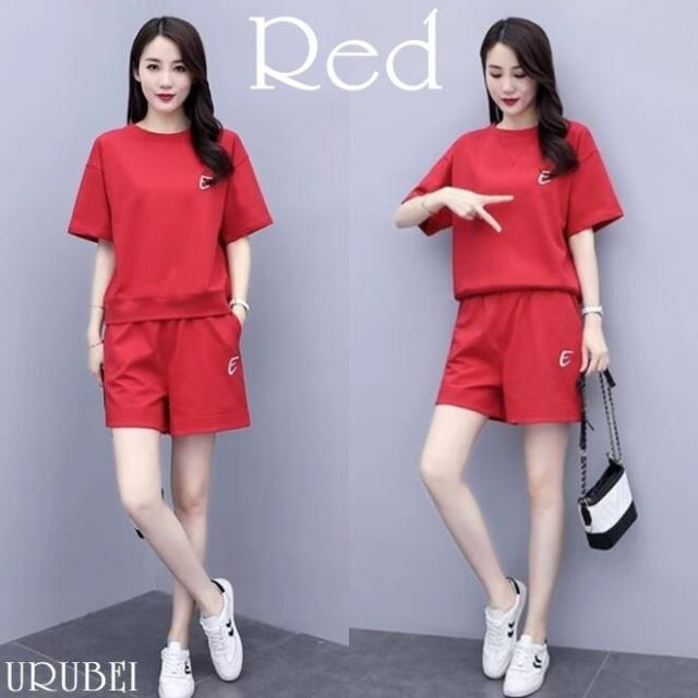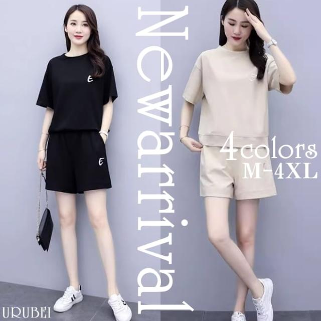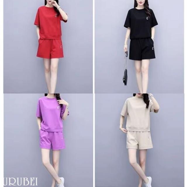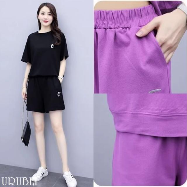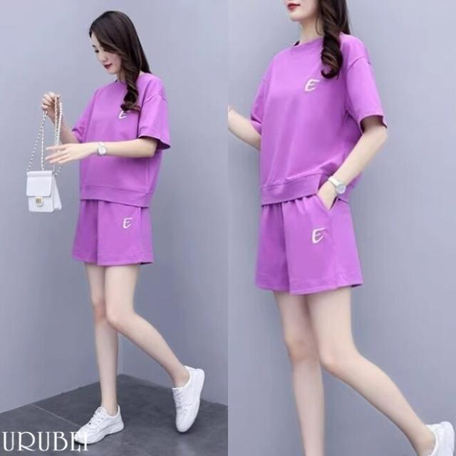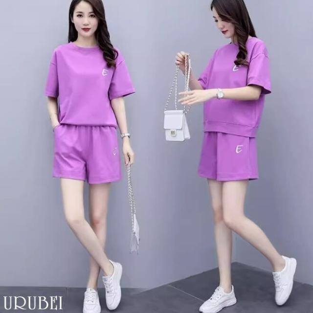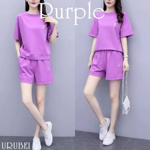 部屋着 セットアップ 韓国 パジャマ レディース スウェット セットアップ 夏 ルームウェア ショートパンツ セット 半袖 上下セット パンツ 女性 おしゃれ 可愛い かわいい シンプル 大きいサイズ ウエストゴム 紫トレ定 プチプラ大 送料無料 Roomwear