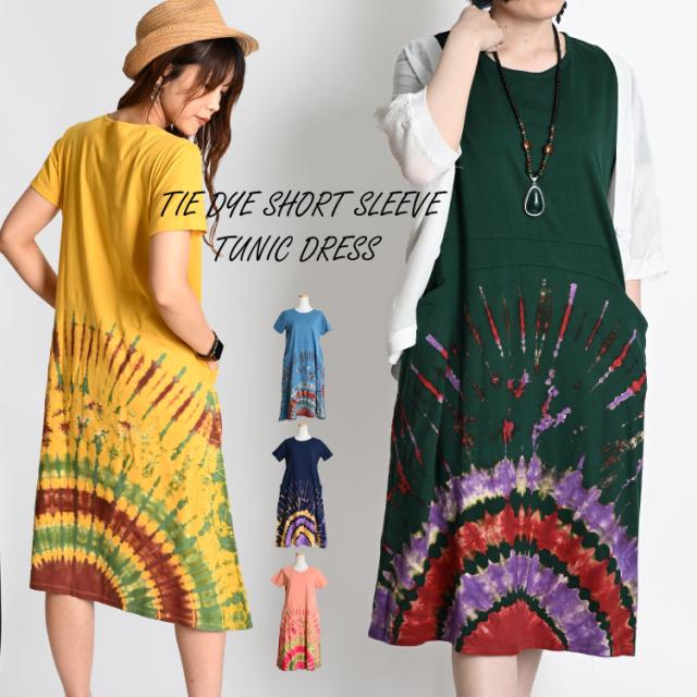 エスニック ワンピース 夏 レディース チュニック ワンピ 半袖 アジアン ファッション 個性的 タイダイ rb22061