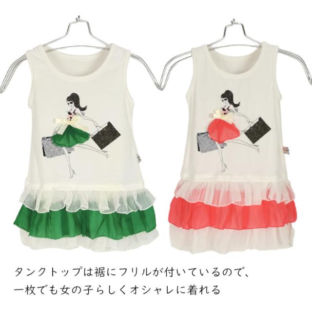 タンクトップは裾にフリルが付いているので、一枚でも女の子らしくオシャレに着れる