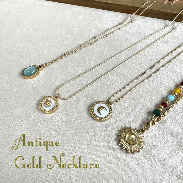 SALE アンティーク ゴールド ネックレス アクセサリー ジュエリー レディース 太陽 月 シンボル ストーン シンプル プレゼント ギフト 贈り物