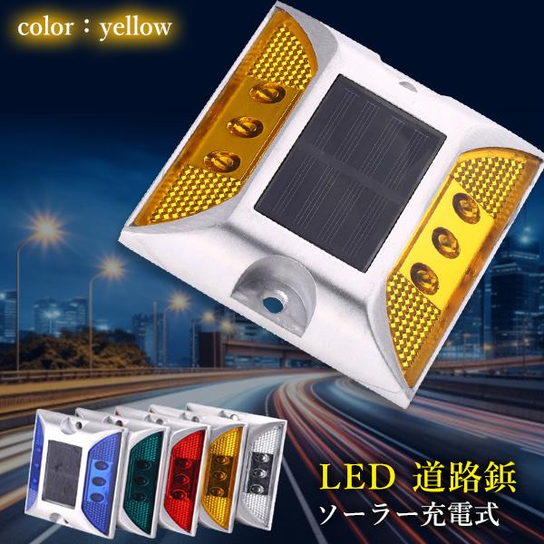 ソーラーライト 点滅式 道路鋲 イエロー LED 充電 道路 照明 ガーデン 防水 埋め込み (管理S) 送料無料