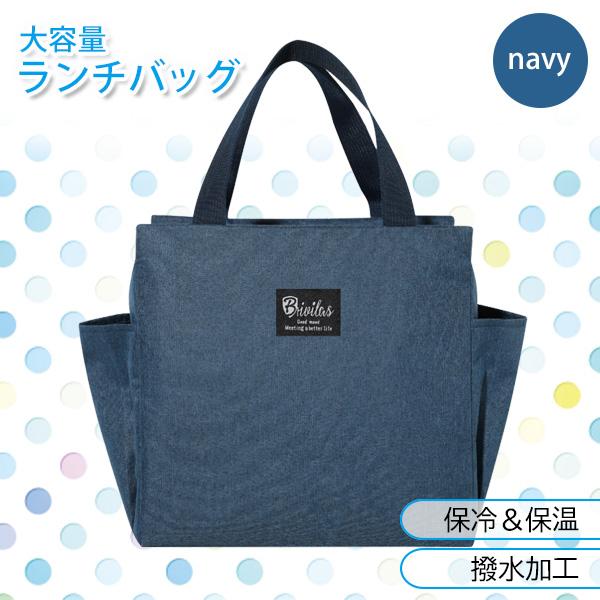 ランチバッグ 保冷バッグ ネイビー 保冷 撥水 お弁当 飲み物 お弁当袋 大きめ 大容量 保温 無地 おしゃれ (管理S) 送料無料