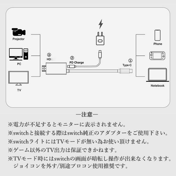 Switch スイッチ 変換ケーブル 変換アダプター TypeC HDMIケーブル ブラック テレビ出力 充電 (管理S) 送料無料
