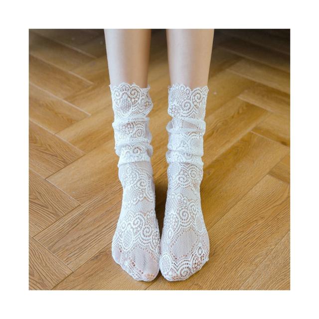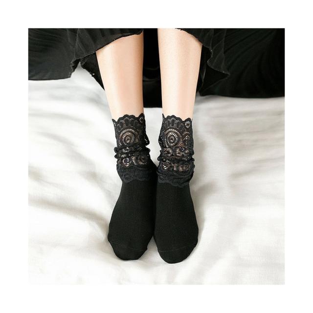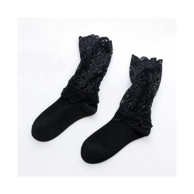 靴下 フリーサイズ レース レースソックス ソックス レース靴下 レディース フリルソックス 春夏秋 ハイソックス レース 半レース 総レース ロングソックス くつした スニーカーソックス 2足セット