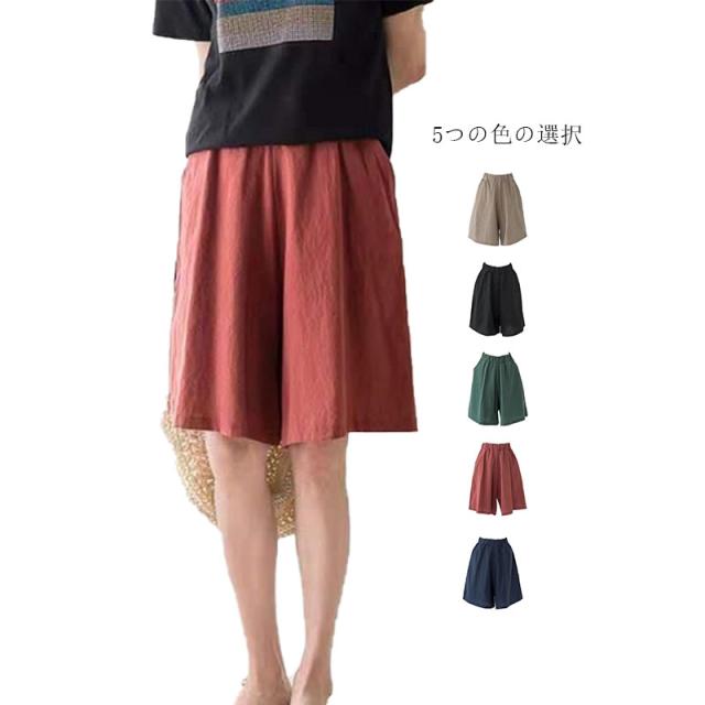 送料無料 ハーフパンツ ガウチョパンツ スカーチョ ショートパンツ ひんやり リネン 涼しい レディース パンツ 森ガール 薄手 接触冷感 短パン 五分丈 ワイドパンツ きれいめ 春 夏 キュロット