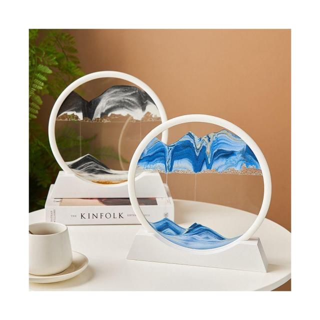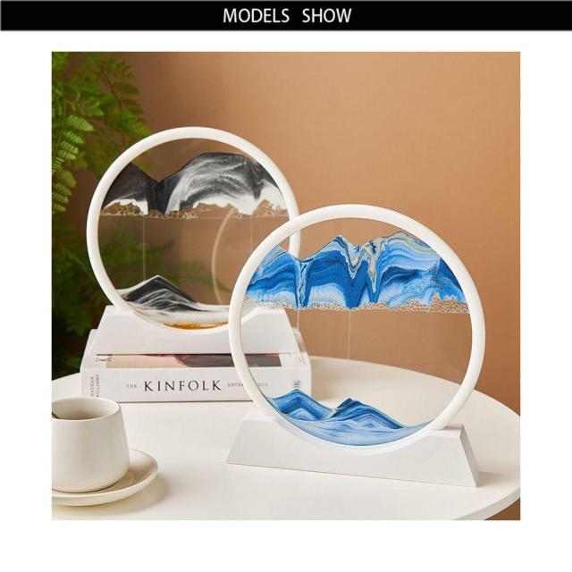 砂時計 サンドピクチャー 透明砂のアート 砂絵 玄関アクセサリー おしゃれ 置物 置き型 流砂絵 サンドアート 丸型 インテリア オフィスの装飾 置き物 インテリア 飾り 透明砂のアート