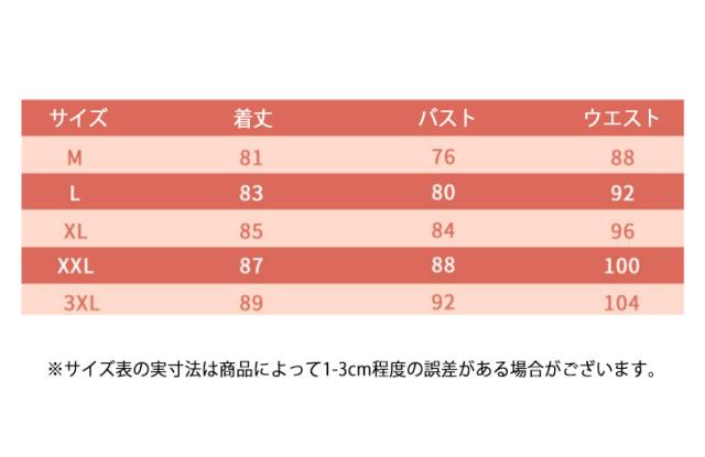 | サイズについての説明 | サイズ 着丈 バスト ウエスト ※サイズ表の実寸法は商品によって1-3cm程度の誤差がある場合がございます。 |