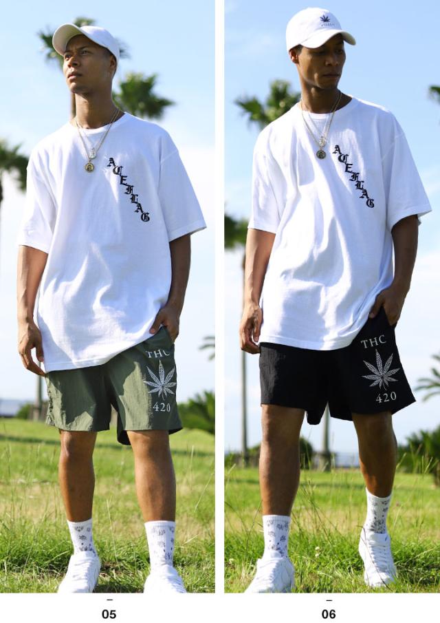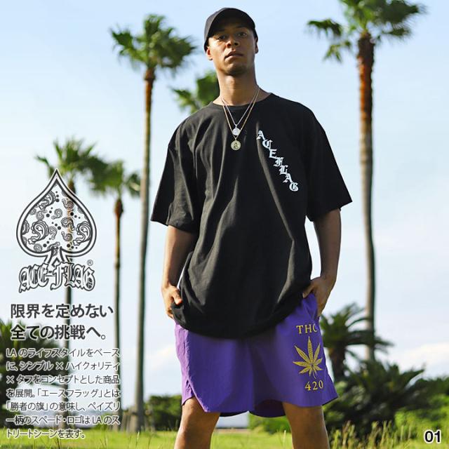 ACE FLAG 上下セット 半袖 Tシャツ ハーフパンツ メンズ 全6種 大きいサイズ エースフラッグ セットアップ ナイロン ビッグシルエット 大麻 マリファナ ヘンプ b系 ヒップホップ ファッション 新作 AF-SE-TS-082