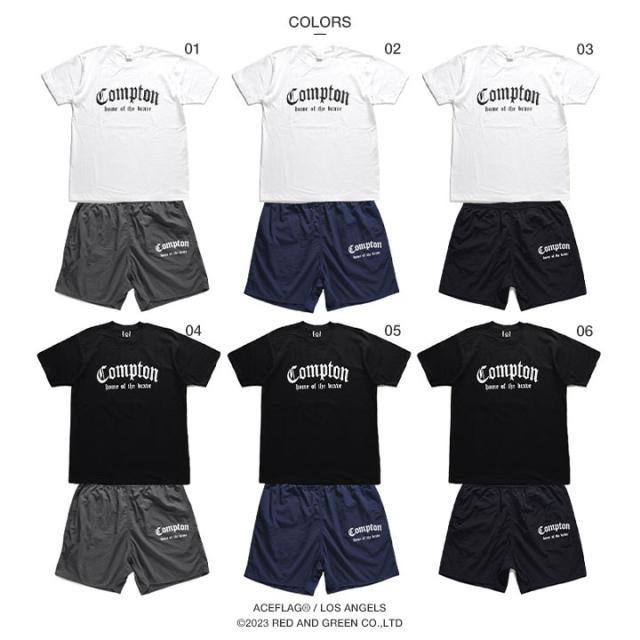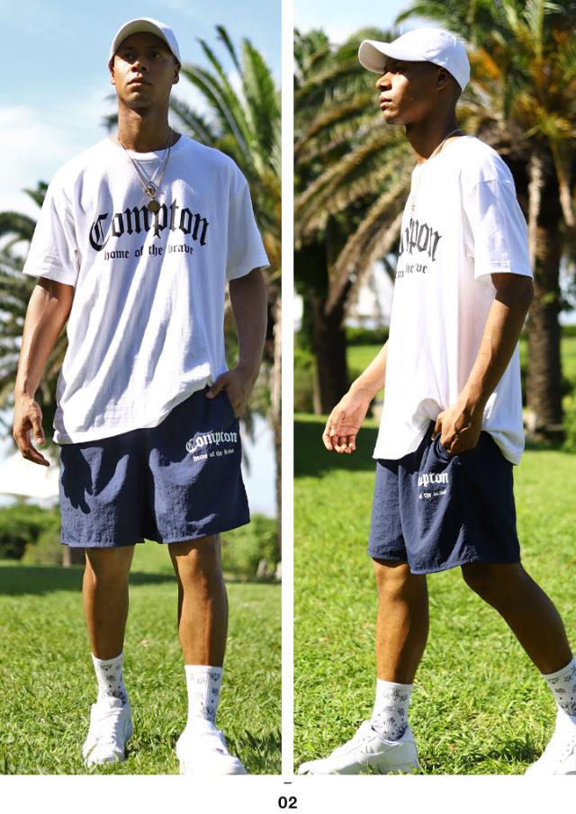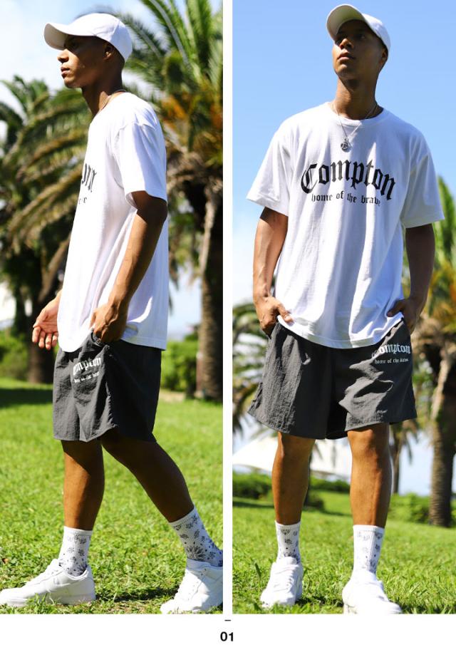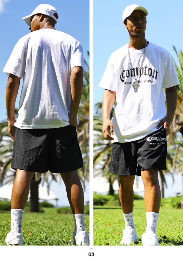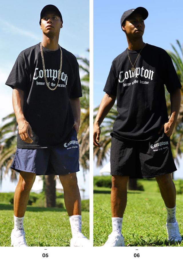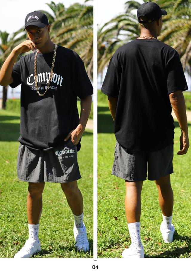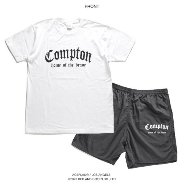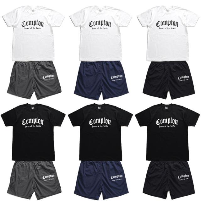 N.W.A.を輩出し、Straight Outta Comptonの舞台としても知られている「Compton」をドロップしたTシャツとナイロンハーフパンツの上下セット。