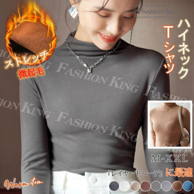 tシャツ 両面起毛 秋冬 春新作 ハイネック 長袖Tシャツ カットソー ストレッチ裏毛 冷えとりtシャツ インナーウェア ぽかぽか 無地 シンプル 母の日 入学式 入園式