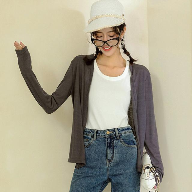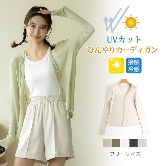 カーディガン UVカット ショート丈 長袖 ライトアウター ニット トップス オフィス 冷房対策 リゾート 紫外線対策 日焼け止め 日焼け防止 紫外線カット