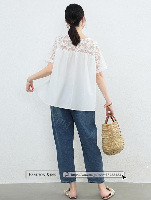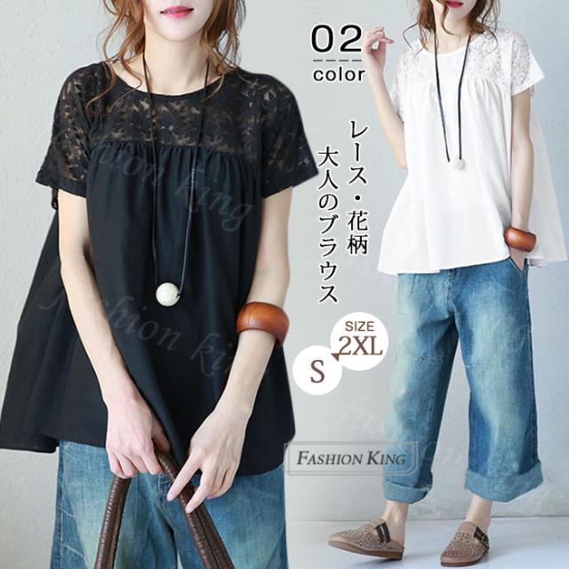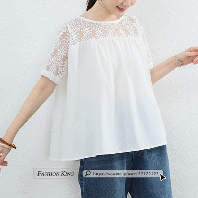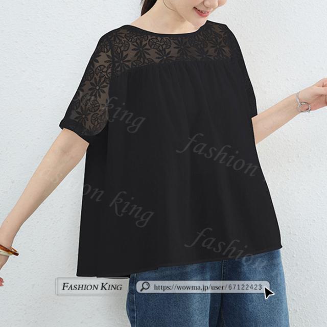 <1点1,990円!クーポン利用で> ブラウス 半袖 花柄レース シャツ トップス レディース 秋冬 春新作 透け感 春服 夏服 ゆったり 透け感 無地 薄手 大人 かわいい 可愛い 柔らかい 半袖 レースブラウス シャツブラウス tシャツ Tシャツ 切り替え 通勤 入学式 入園式