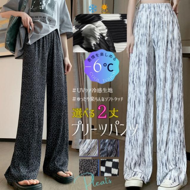 <1点1,590円!クーポン利用で>リラックスパンツ プリーツパンツ ワイドパンツ 新作 接触冷感 大きいサイズ ガウチョパンツ UVカット スカーチョ ロングパンツ ゆったり 体型カバー おしゃれ ボトムス ホワイトデー 卒業式