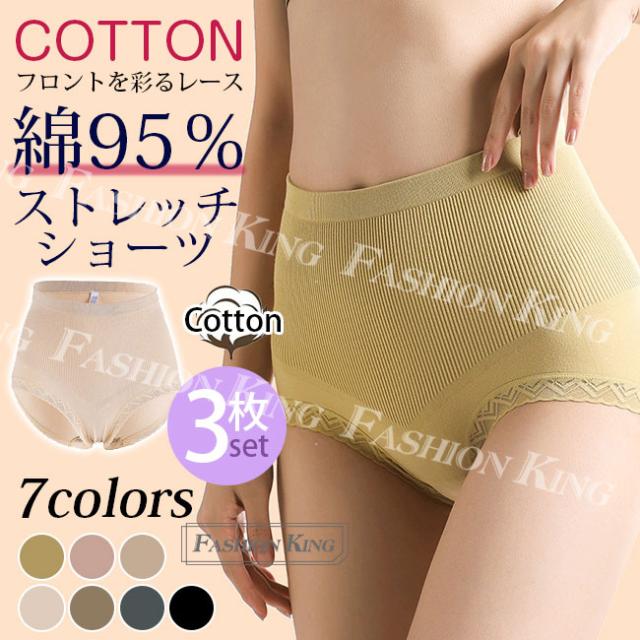 ショーツ 3点セット 秋冬 腹保温 下着 抗菌 通気性 肌触りやさしい パンツ ハイウエスト サニタリー 綿混 ストレッチ 伸縮性 インナー エレガント お腹らくちん レディース 女性 可愛い かわいい お買い得 定番 人気