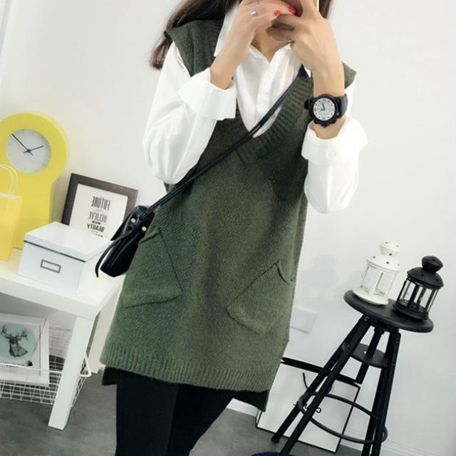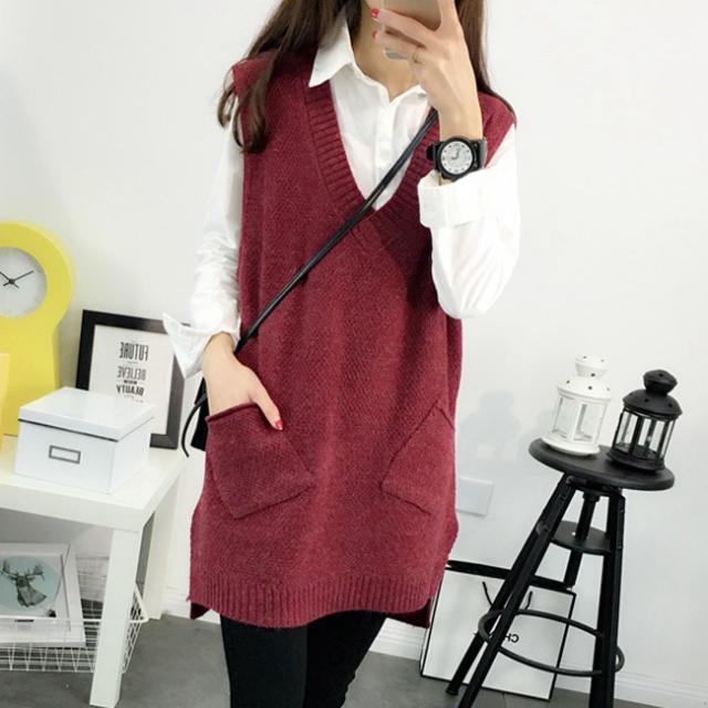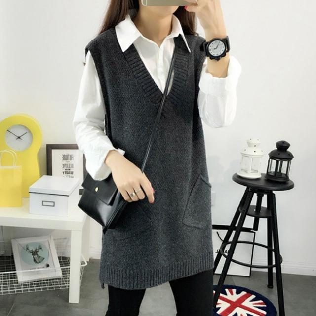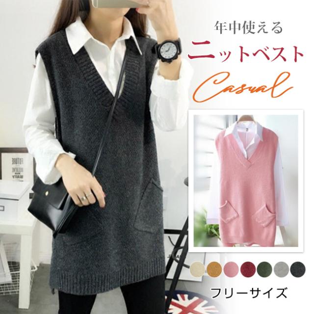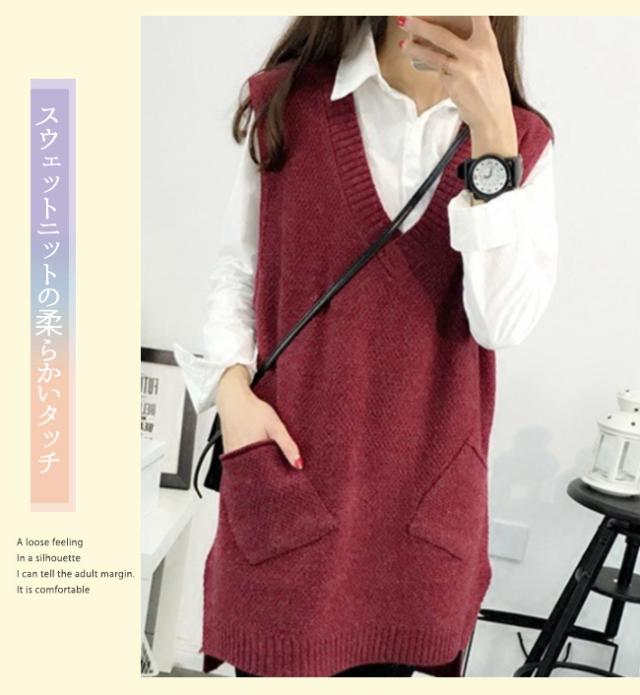 ニットベスト レディース 秋冬 春新作 ノースリーブ トップス スウェット Vネック レイヤード プルオーバー タンクトップ サイドスリット 送料無料 コーデ 重ね着 春 秋冬 カジュアル 体型カバー ケーブル編み 縄編み 母の日 入学式 入園式